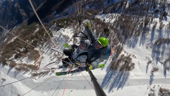 Paragliding tandem flight for thrill seekers, for those looking for a more dynamic flight. This service focuses on active piloting to experience more pronounced acceleration and pendulum movements.