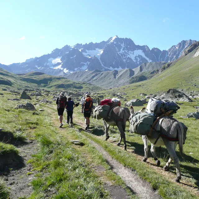 Itinerant family walks with pack donkeys. Stays of 3 to 7 days suitable for families and children aged 6 and over.