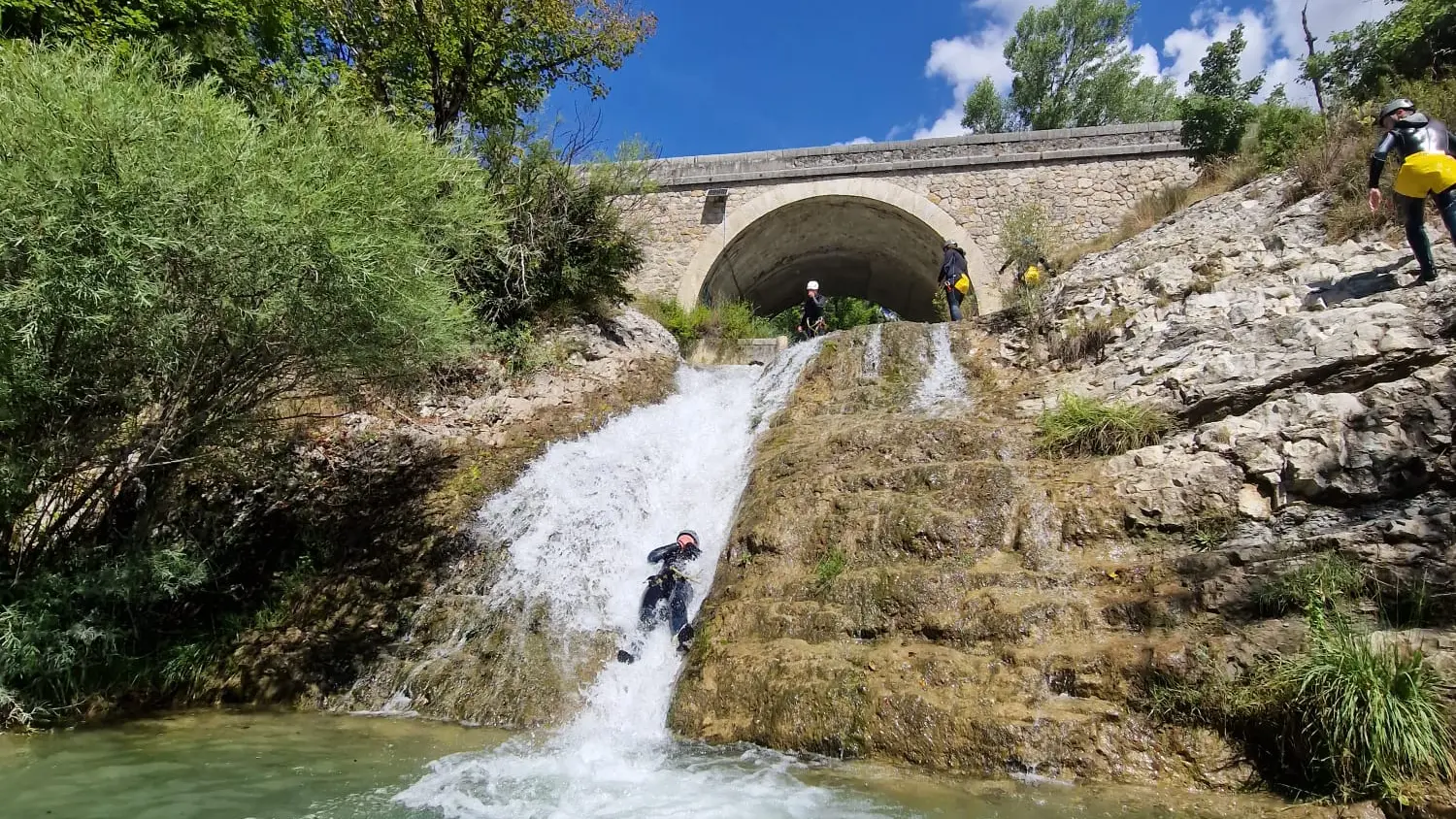 Jump in the Verdon and follow the river... Rocksiders guide you in your canyoning tours in the Verdon gorge and around : canyoning tours for everyone, from 8 years old !