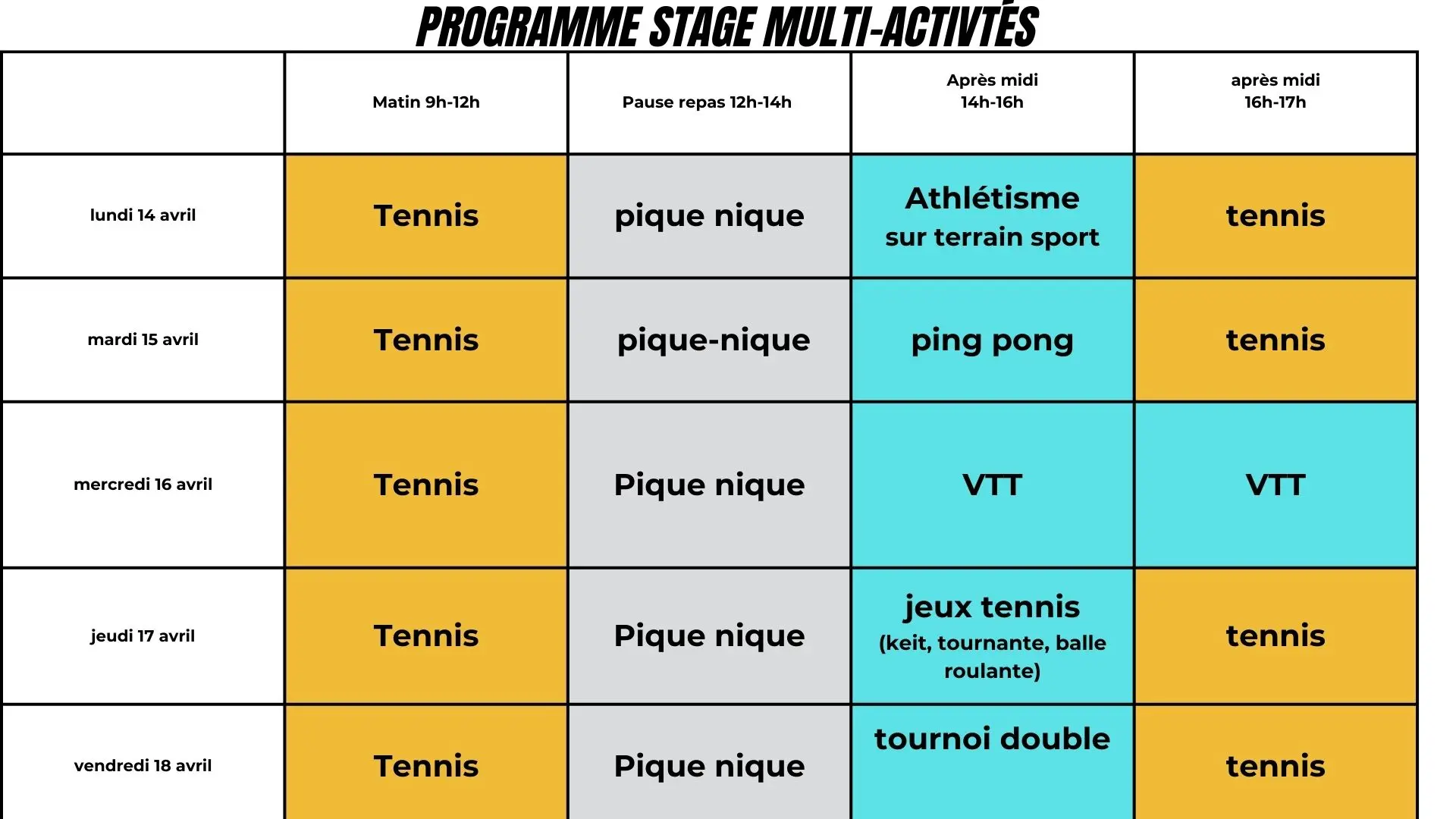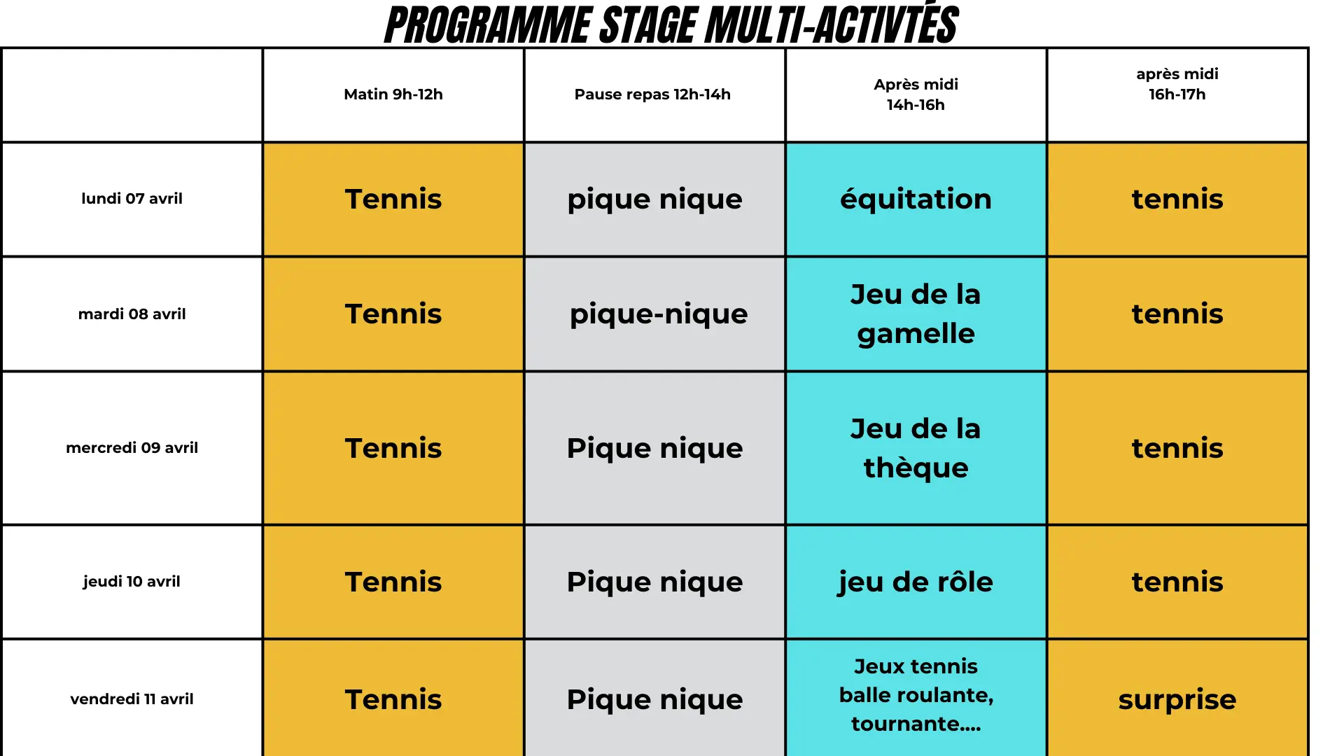 Contact Stage tennis et multi activités