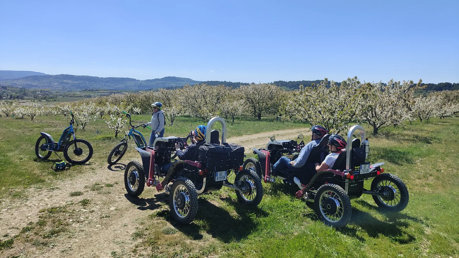 Get behind the wheel of an all-terrain electric swingcar (solo or duo) or the handlebars of an all-terrain E-scooter for a guided and commented discovery of the most beautiful spots of the South Ventoux off the beaten track.