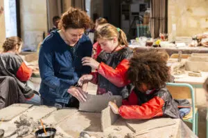 During the school vacations, children work on a creative project with an artist for 4 days.
