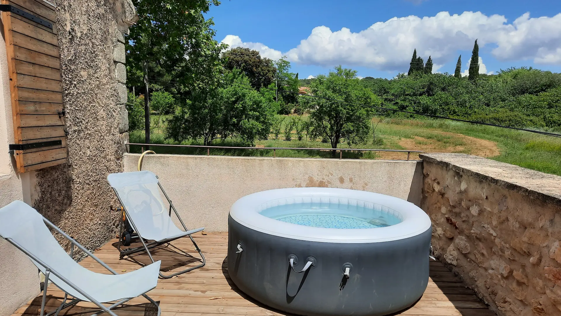 In the heart of the organic raspberry orchard, enjoy an authentic gîte. Located on the first floor of the farmhouse, it comprises a large room with a fully-equipped kitchen and living room opening onto a large 34m² terrace, with garden furniture, garden table and chairs, and jacuzzi in summer.