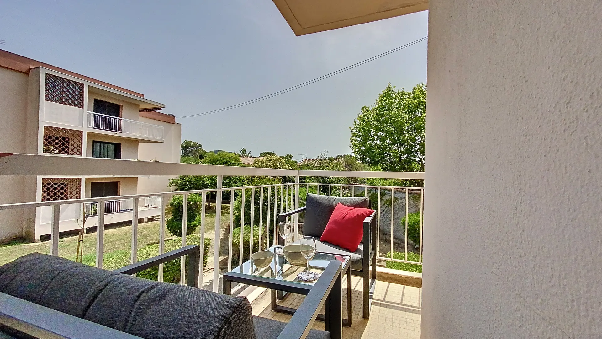 Quietly located, the apartment is bright and well appointed. It comprises an entrance hall opening onto a large living room, a separate kitchen opening onto an L-shaped terrace. Enjoy the sun and warmth of the south, and long meals with family or friends in complete peace and quiet. On the night side, there's a 13 m2 bedroom with a 140 x 190 cm double bed and a chest of drawers, and a second 12 m2 bedroom with a 140 x 190 cm double bed and a storage cupboard.