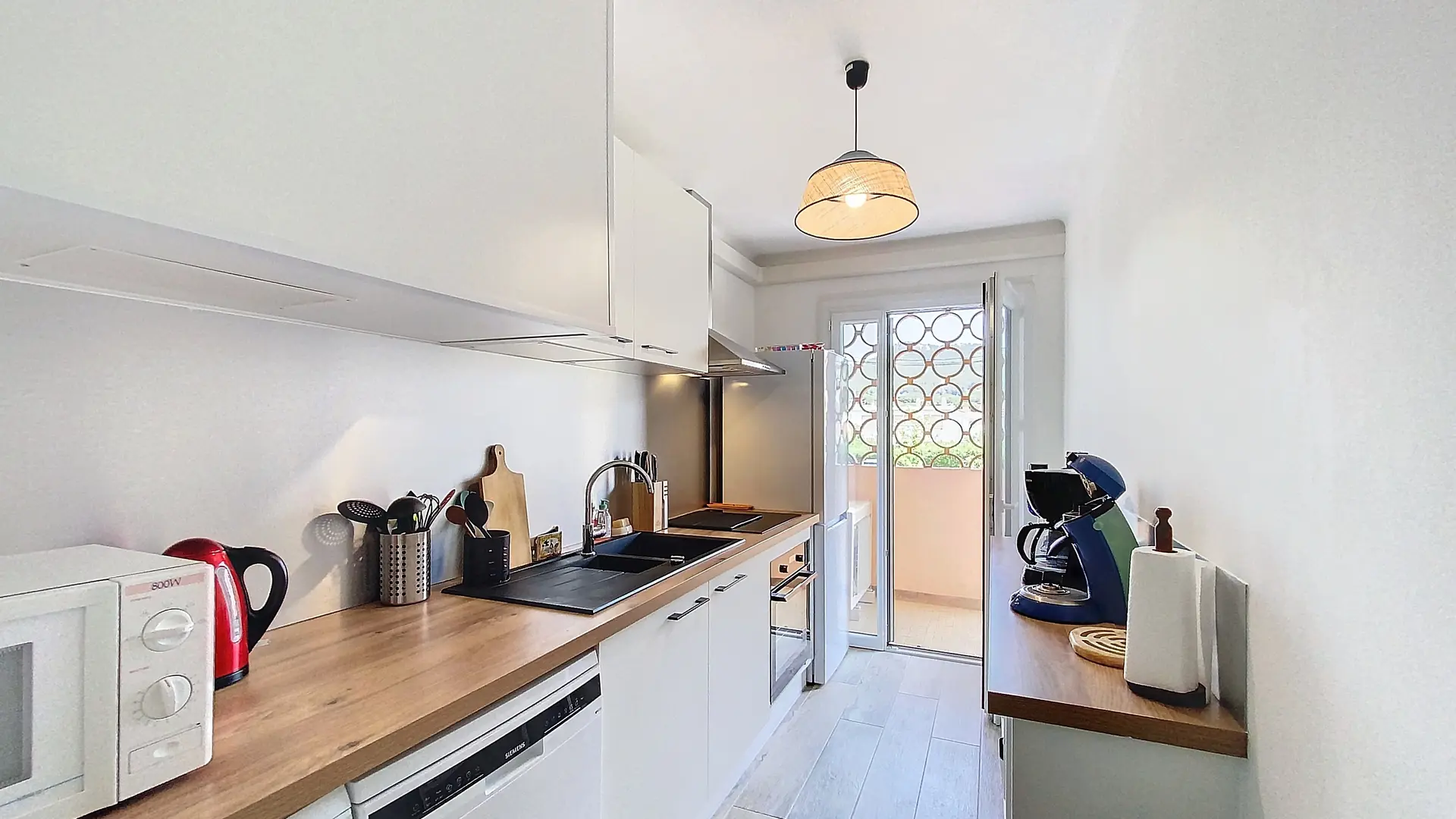 Washing machine; dishwasher; air-conditioning; wifi internet; electric griddle; television; two 140cm double beds; senseo coffee machine and one filter machine; microwave; kettle; toaster; vacuum cleaner; sufficient crockery and cooking utensils for the sleeping capacity indicated.