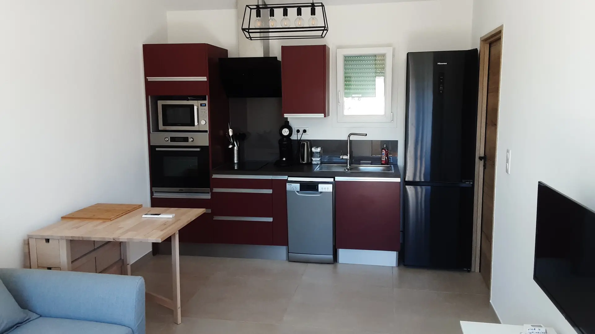 New 30 m² T2 apartment with 22 m² enclosed terrace located in countryside setting on 3500 m² of land.