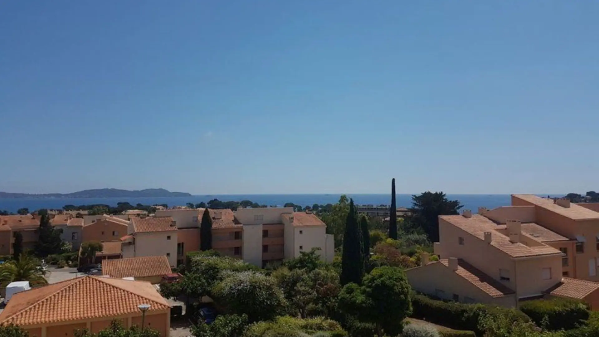 Breathtaking sea view. Bright, air-conditioned apartment for 4 people. 1 independent bedroom, shower room, separate WC, open-plan fitted kitchen. Close to sea, shops and town center. Residence with private, supervised swimming pool. Prices from 350€.