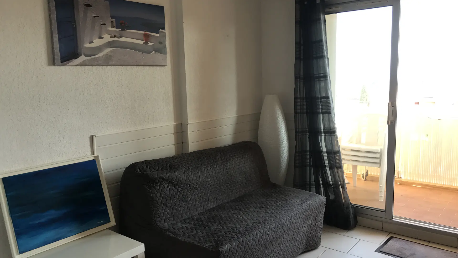 Breathtaking sea view. Bright, air-conditioned apartment for 4 people. 1 independent bedroom, shower room, separate WC, open-plan fitted kitchen. Close to sea, shops and town center. Residence with private, supervised swimming pool. Rates from 350€.