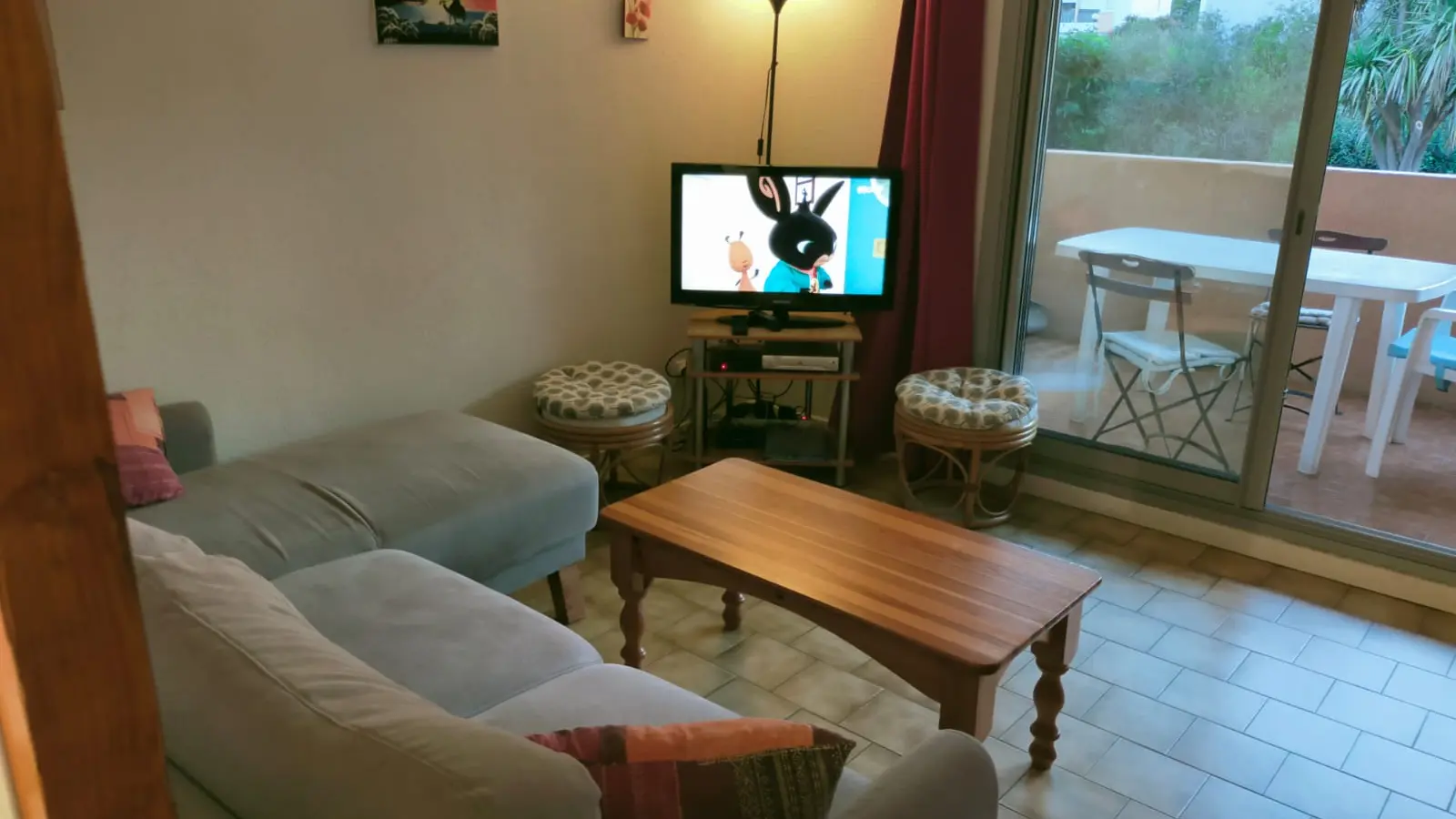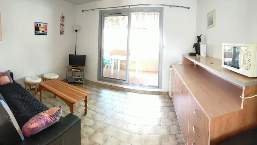 - 1 living area with 1 convertible sofa bed (sleeps two).