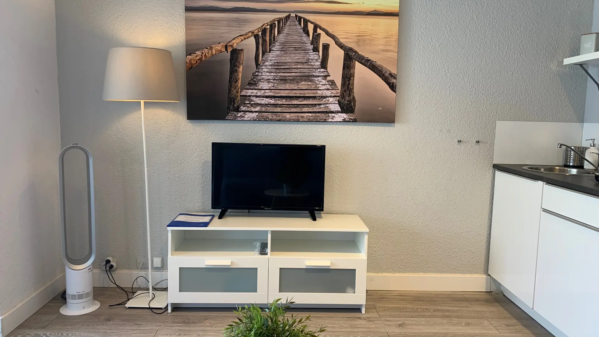 - Entrance hall with storage cupboard, bright and spacious living room with flat-screen TV, free Wi fi access and Dyson air conditioning.