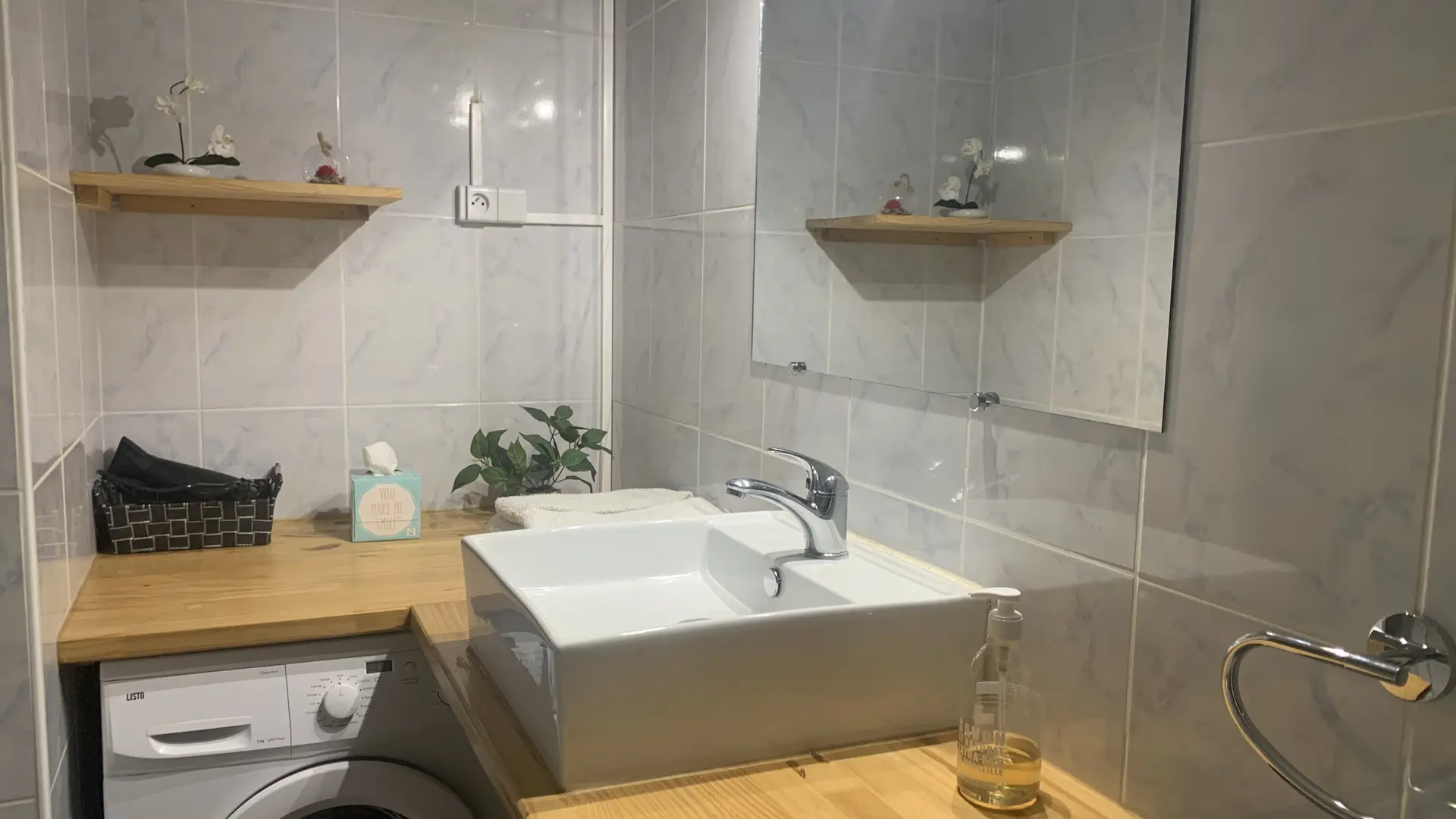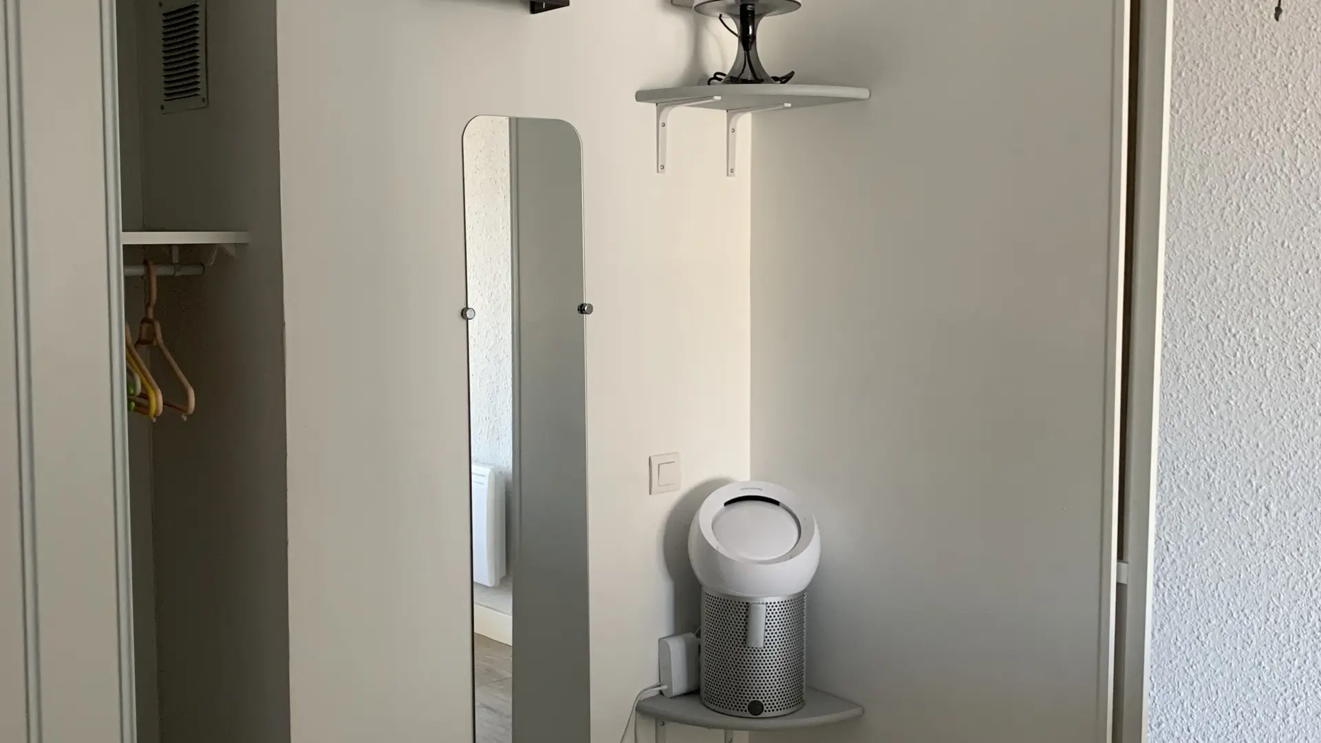 - a small master bedroom with a 140cm bed and dressing room. Comforter and pillows are provided, as well as air conditioning and a Dyson air purifier (sheets not supplied, see conditions below).