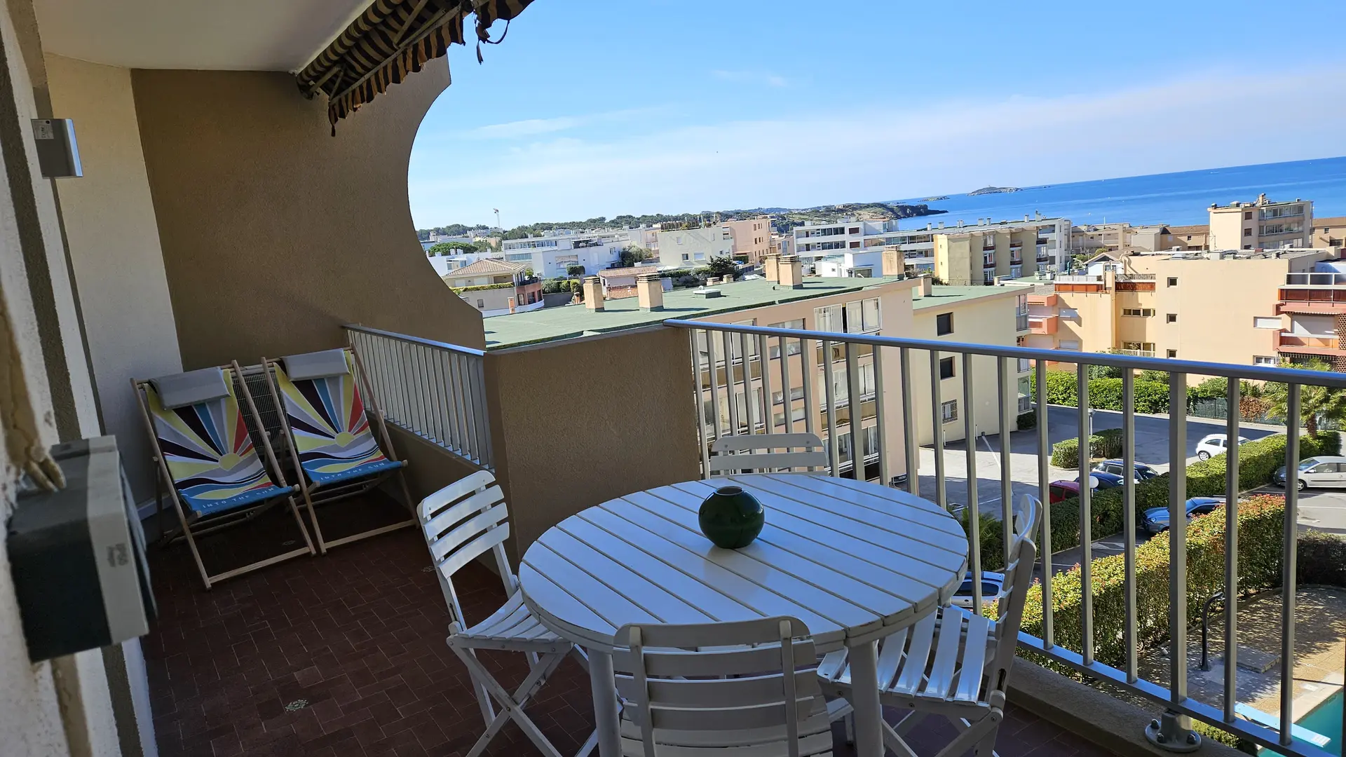 - 1 Terrace of 15 m2 with table and 4 chairs, 2 chiliennes to enjoy the outdoors and the magnificent sunsets.