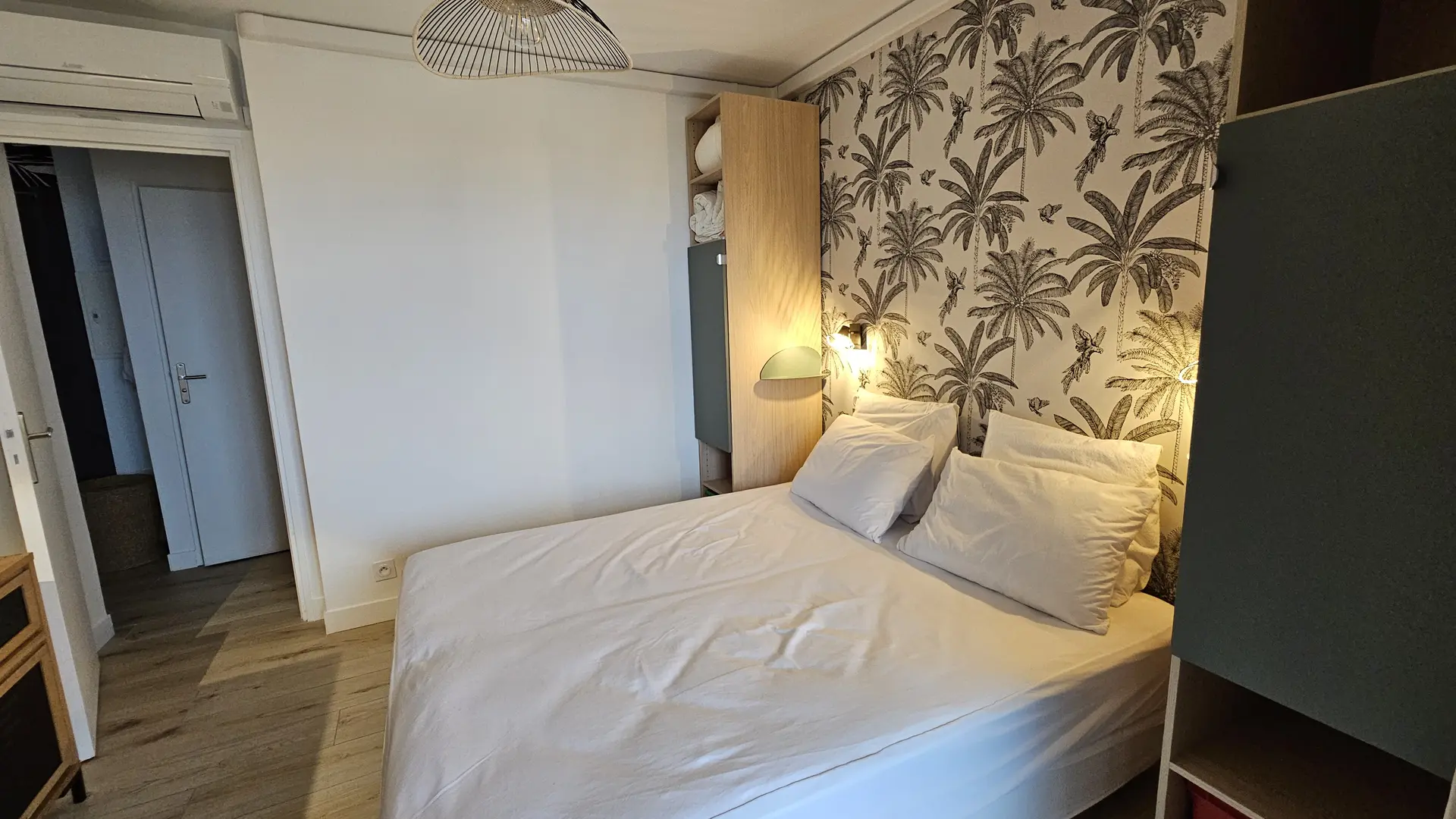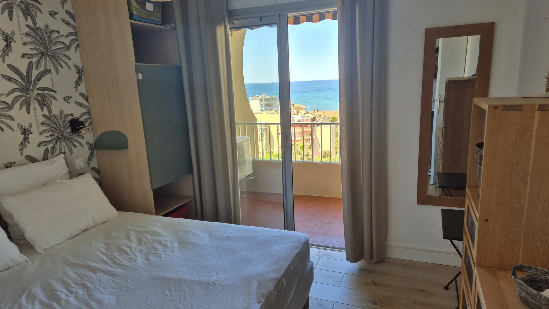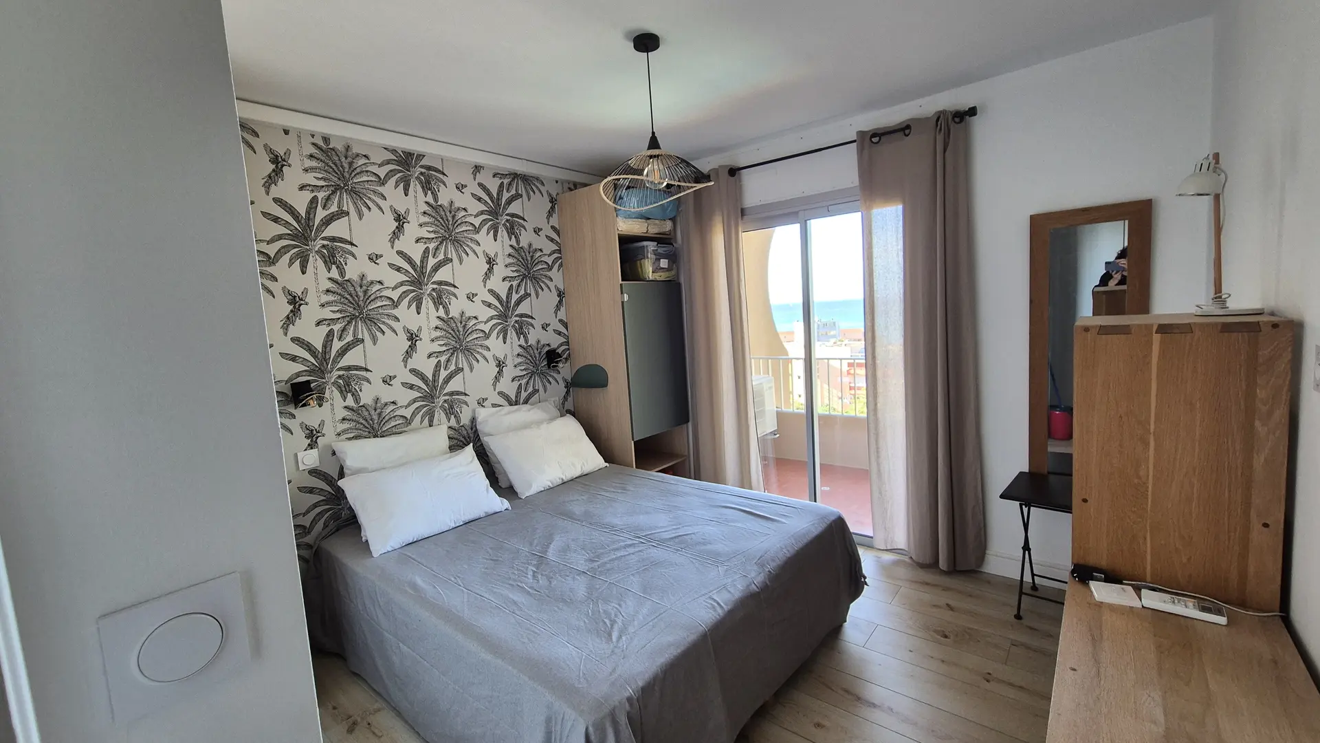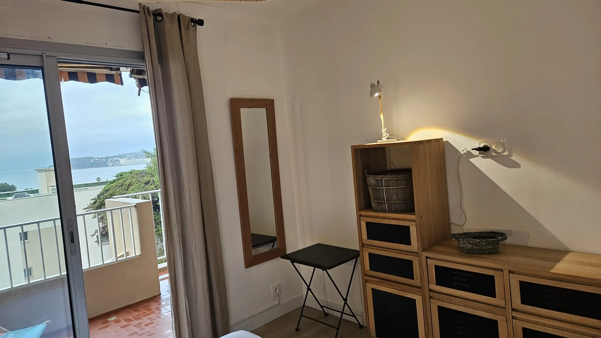 - a 10 m2 bedroom with 2 beds 80x200 that can be combined to form 1 double bed 160x200, with access to the terrace, and plenty of storage space (closet columns, chests of drawers, etc.).