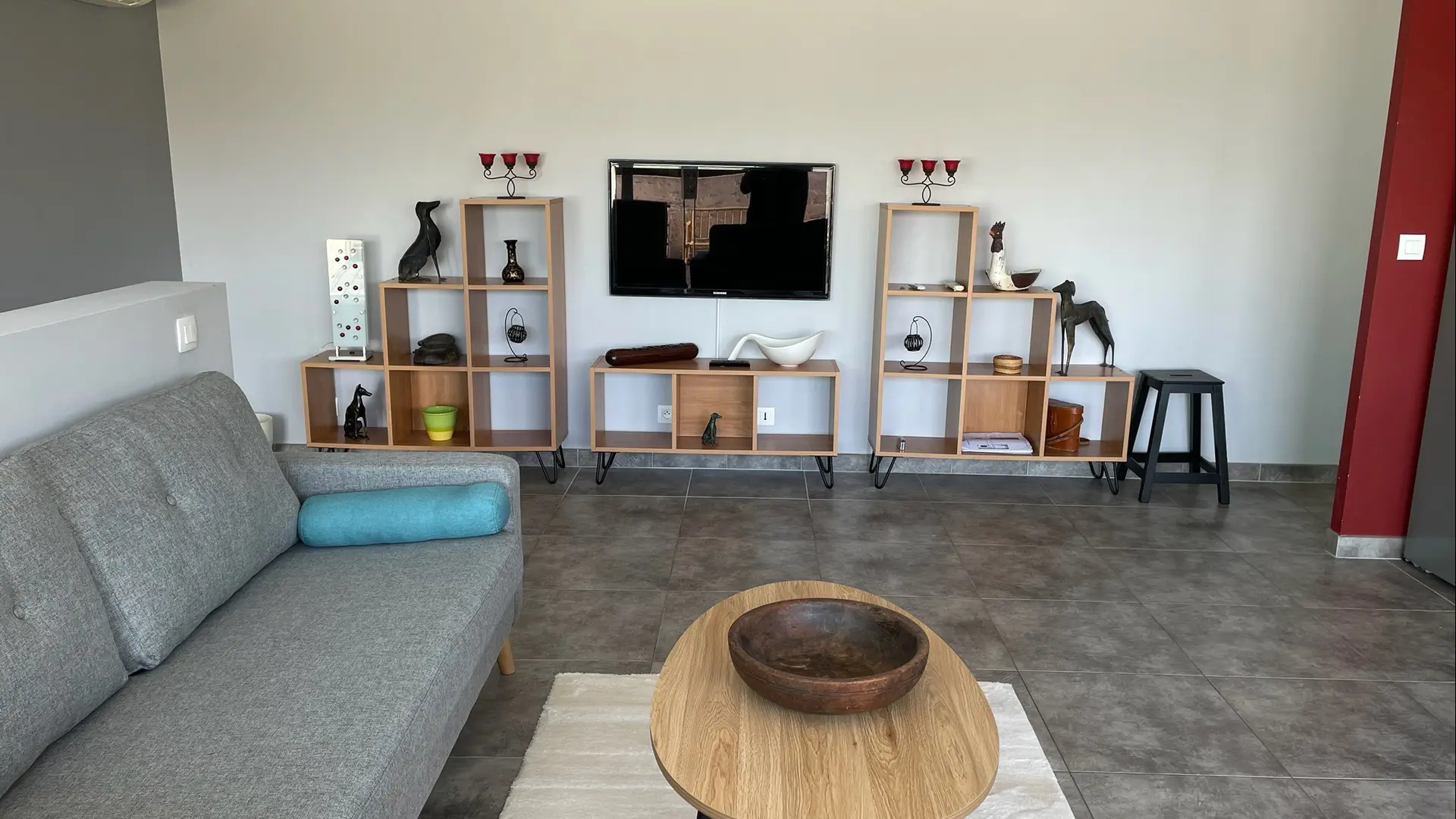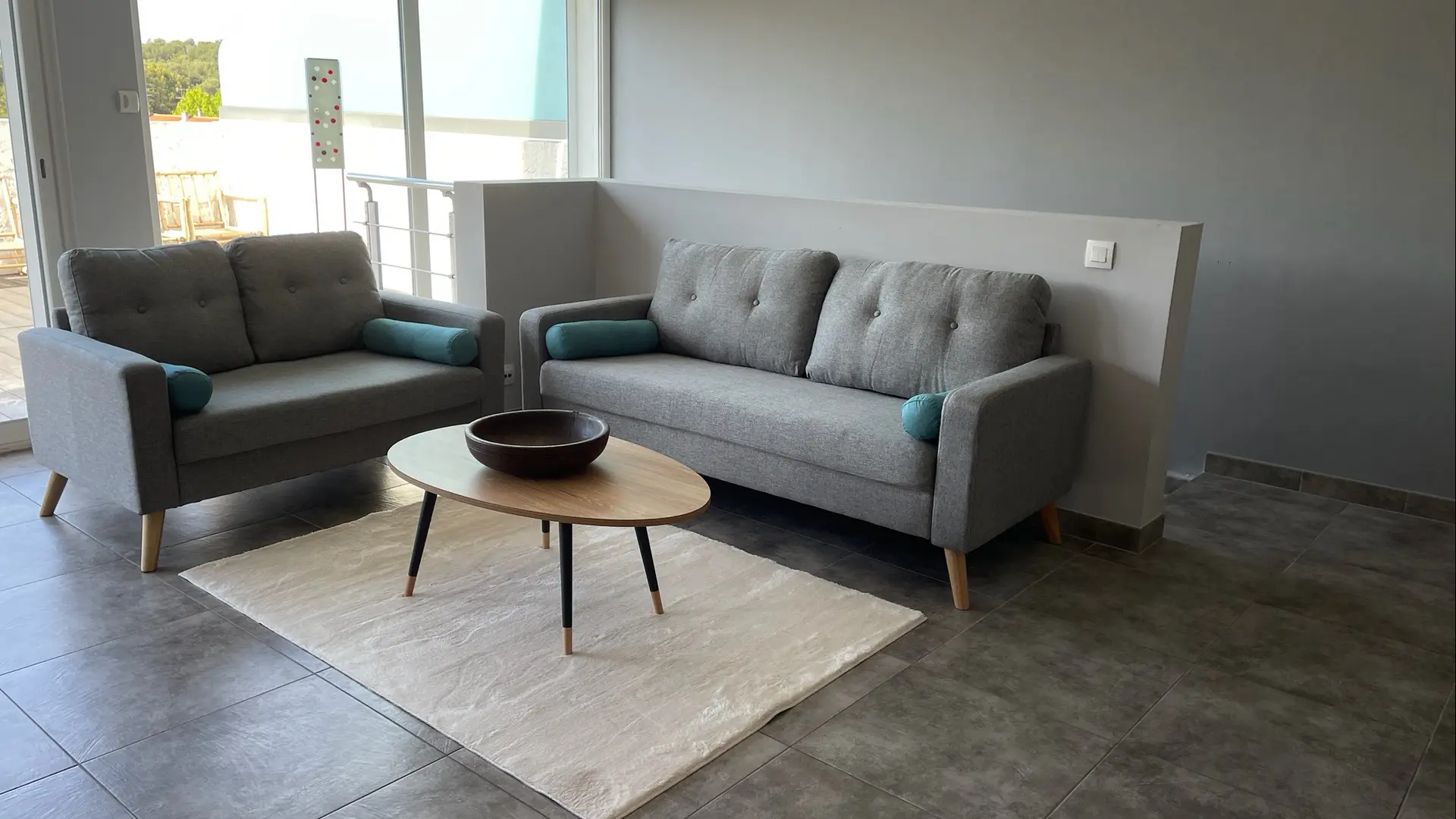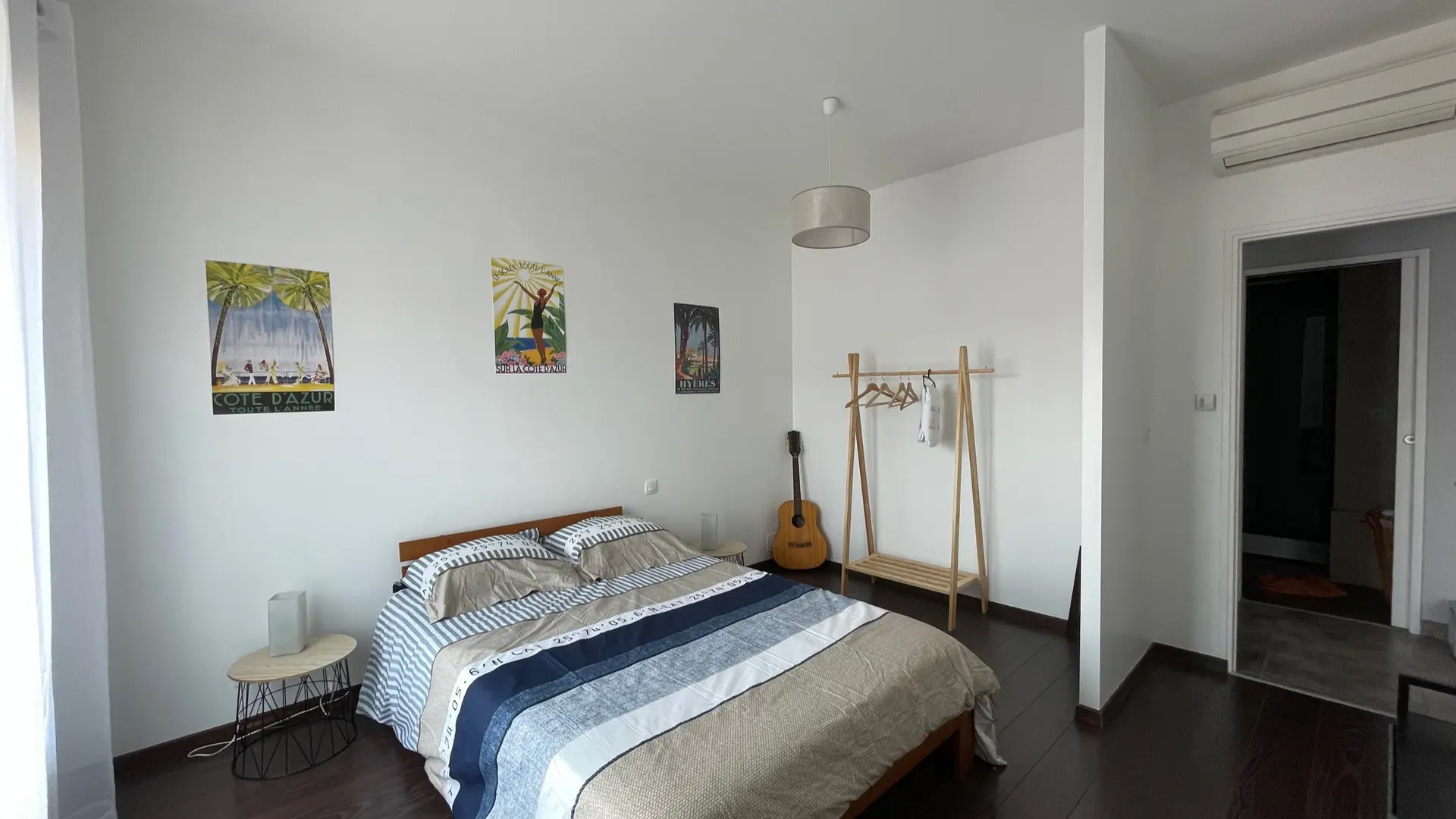 This is a duplex apartment with the sleeping area downstairs and the living room and large terrace upstairs.