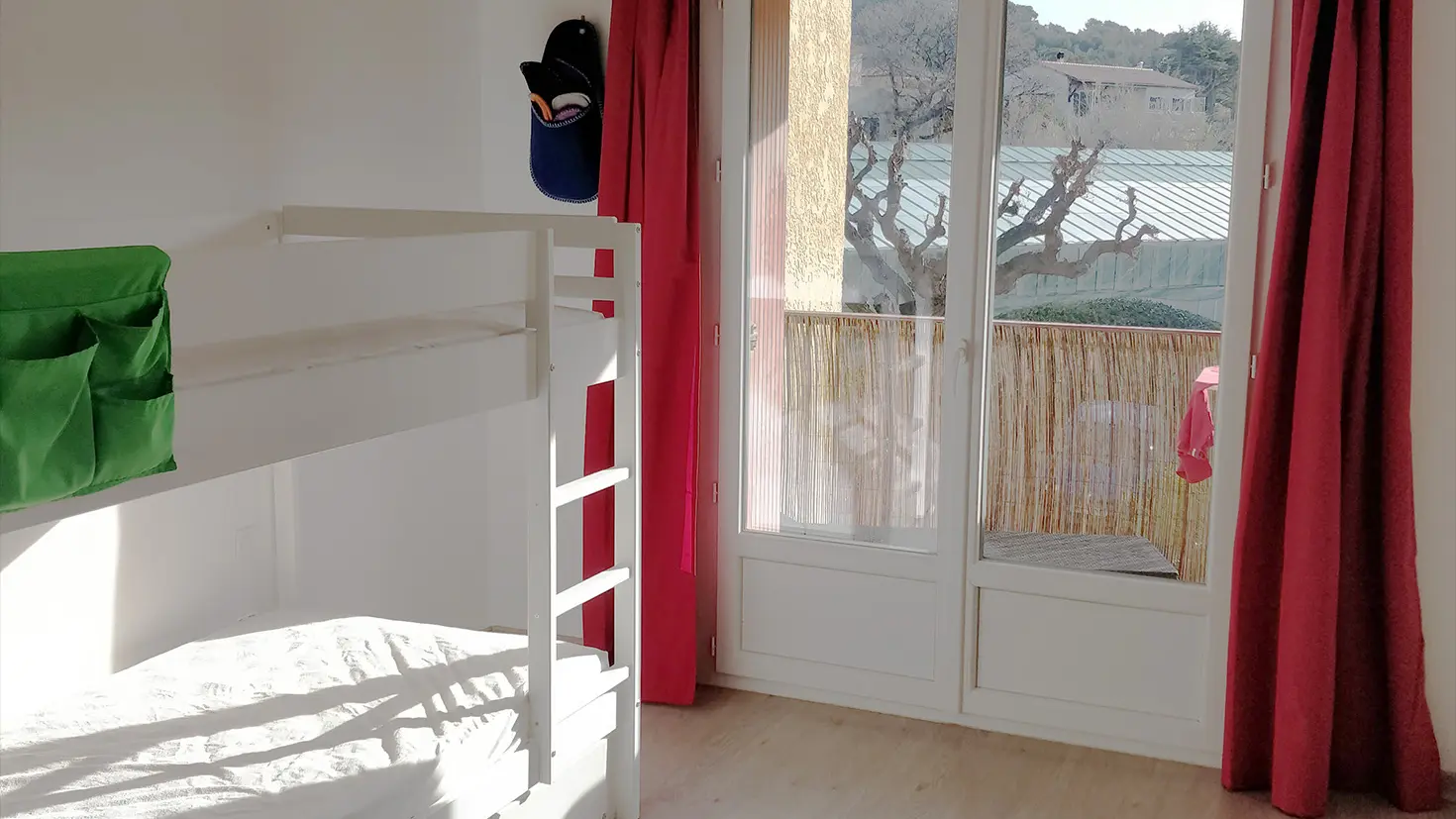 3 bedrooms: two with 160 cm beds, (twice 80), 1 bedroom with bunk beds + 1 pull-out bed.
