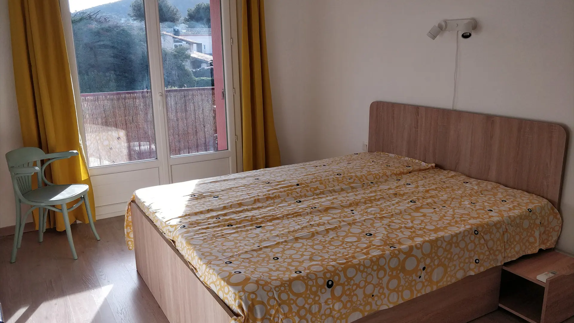 2 east-facing balconies on bedroom and kitchen sides.