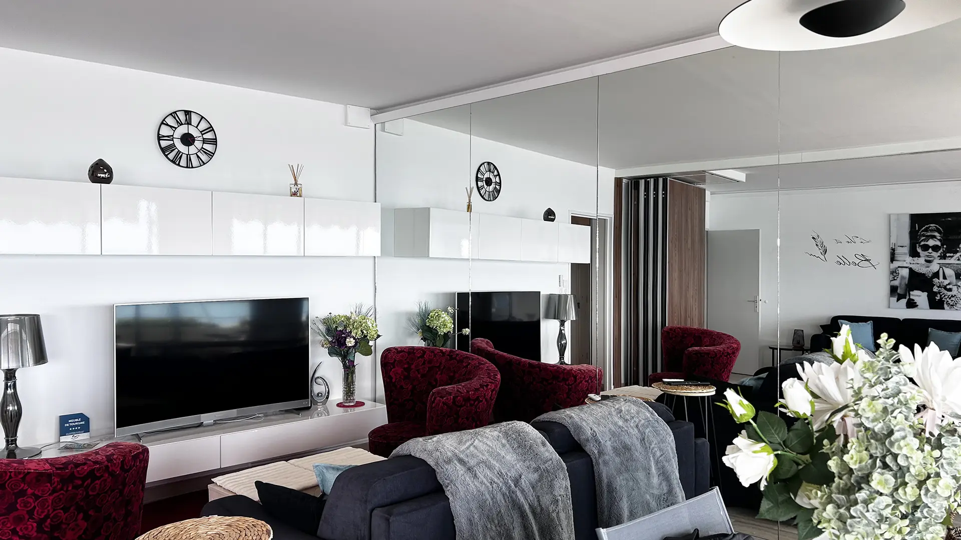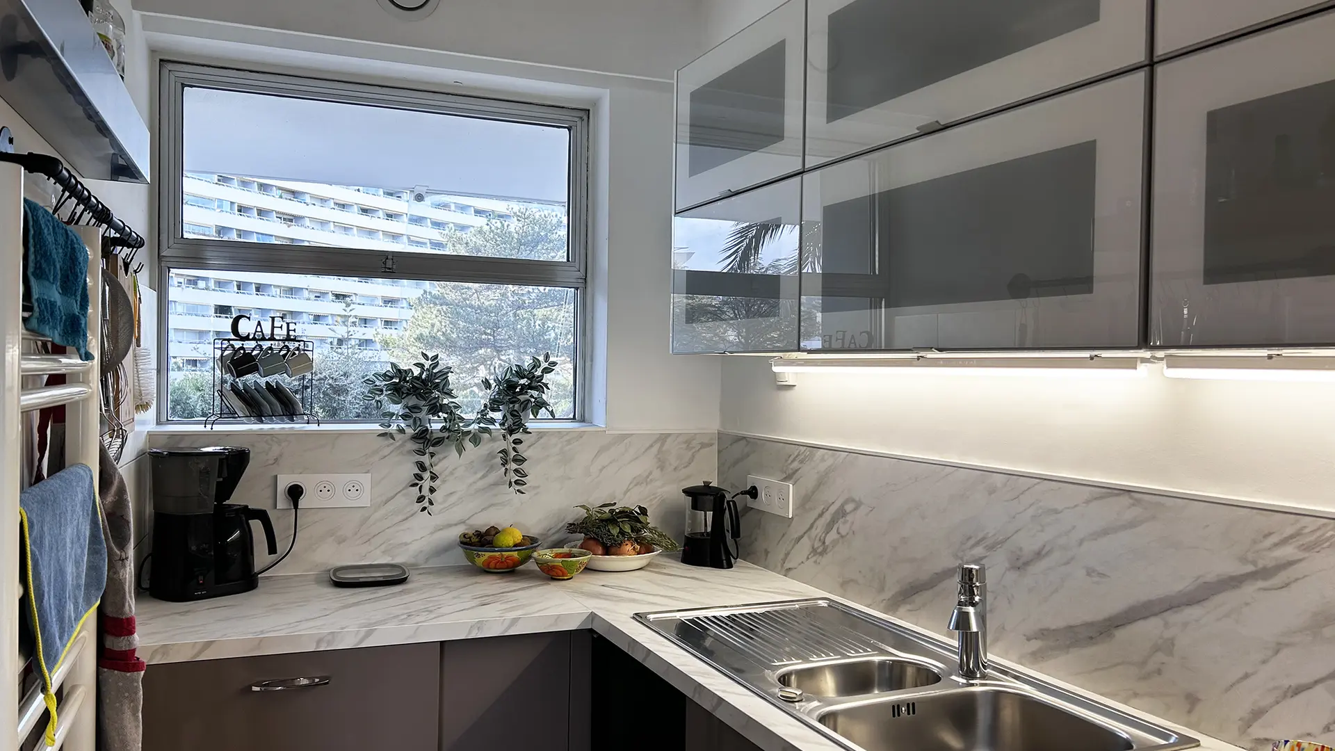 Beautiful, fully equipped, spacious, luxury 3-room apartment located on the 1st floor. Large terrace with panoramic sea view. Private underground parking. High-end amenities. Pleasant and flexible rental with 2 bedrooms, 2 shower rooms and 2 WC.