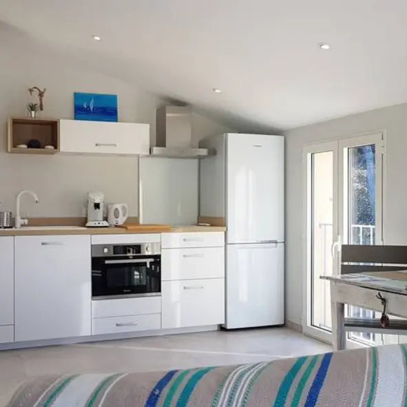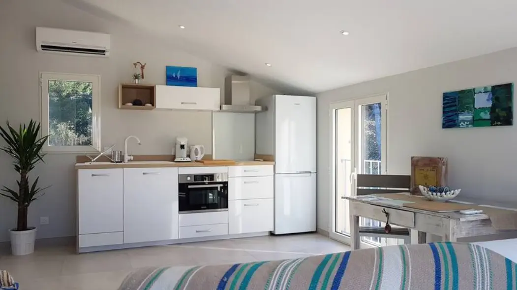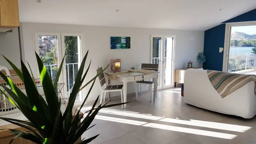 On the second floor of our villa, the apartment known as 'La Presqu'île' offers our guests a balcony overlooking the Le Brusc lagoon and views of the open sea.