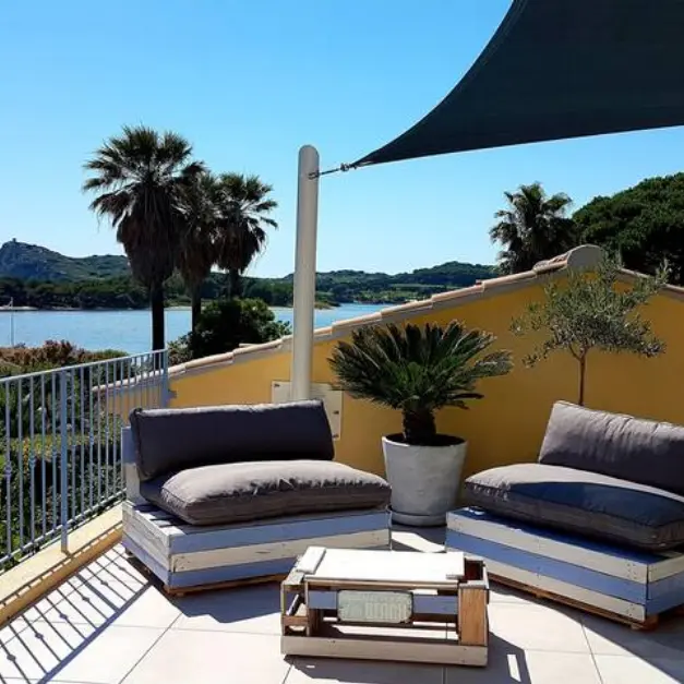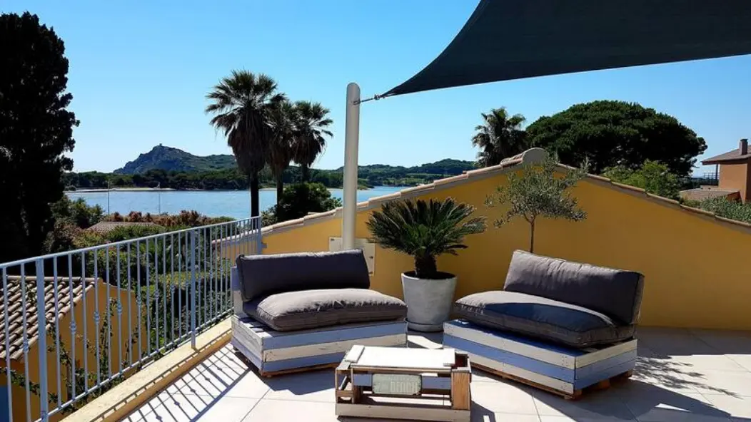 It offers a large terrace overlooking the Le Brusc lagoon.