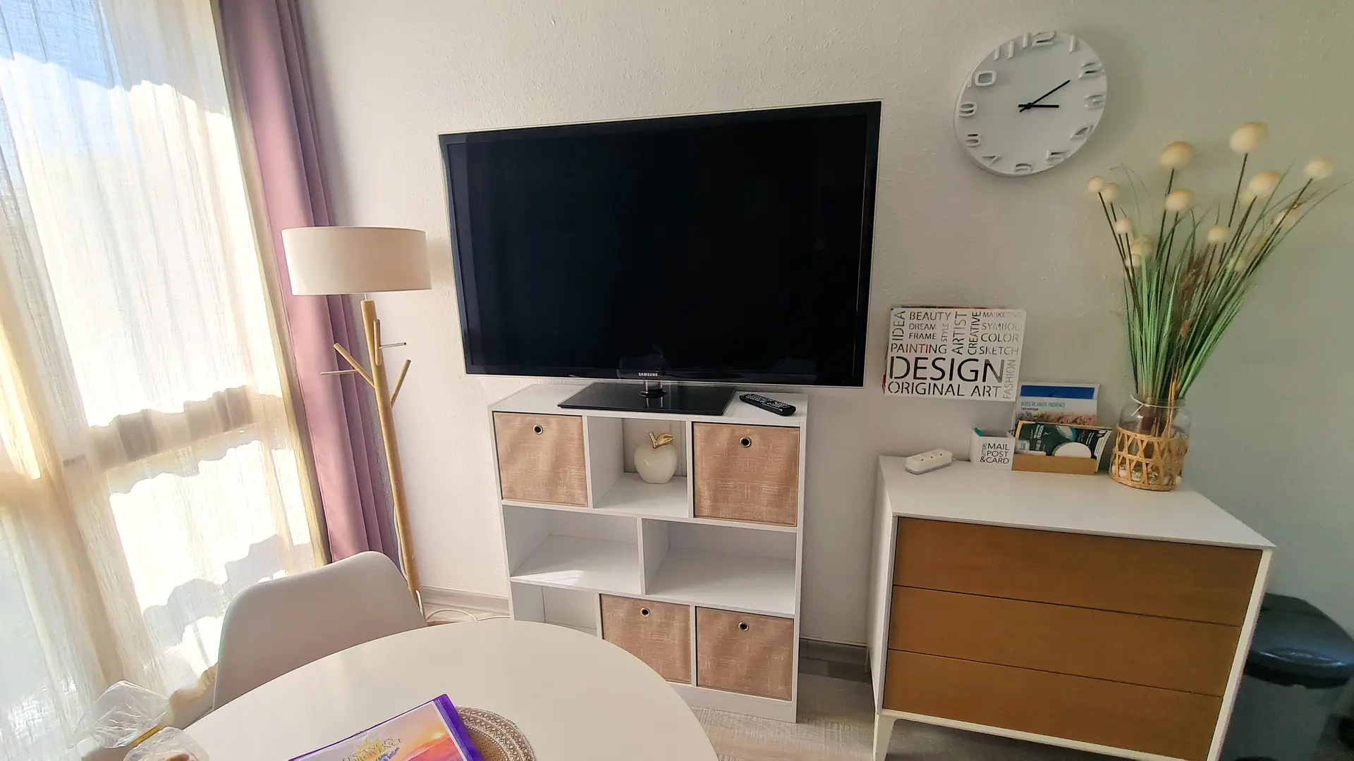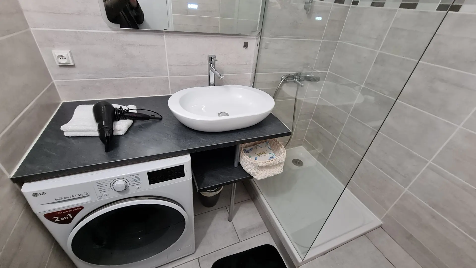 Warm and welcoming, we've tried to think of everything for your comfort and offer you quality accommodation. For your sleep, the studio is equipped with Bultex bedding. For your entertainment, there's a giant-screen TV on the wall in the dining room, which is furnished and decorated in a designer style. For your meals, there is a large traditional 42-litre oven, a microwave and a double ceramic hob.