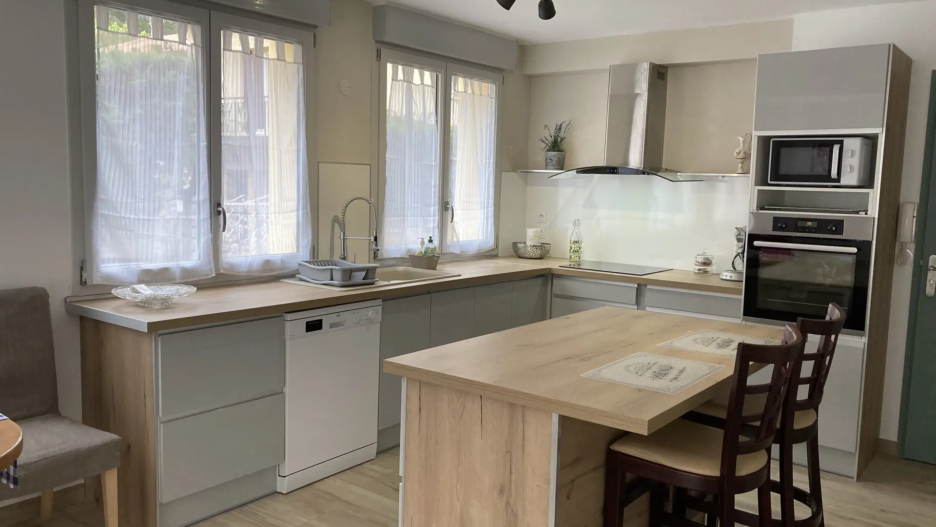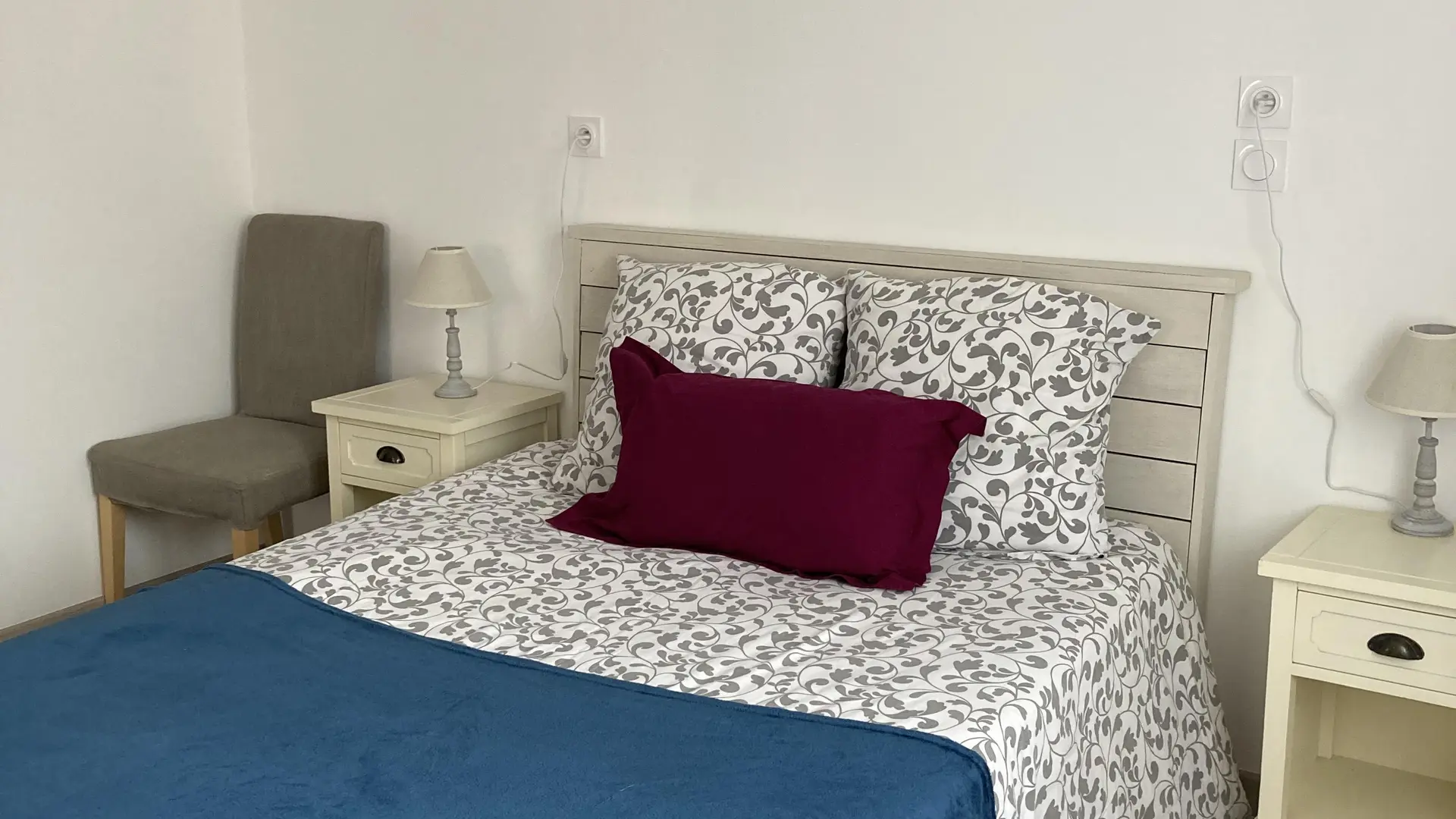 Located on the ground floor of a small residence, large, bright and comfortable 50m2 apartment with terrace and parking space in front, in a residential area.