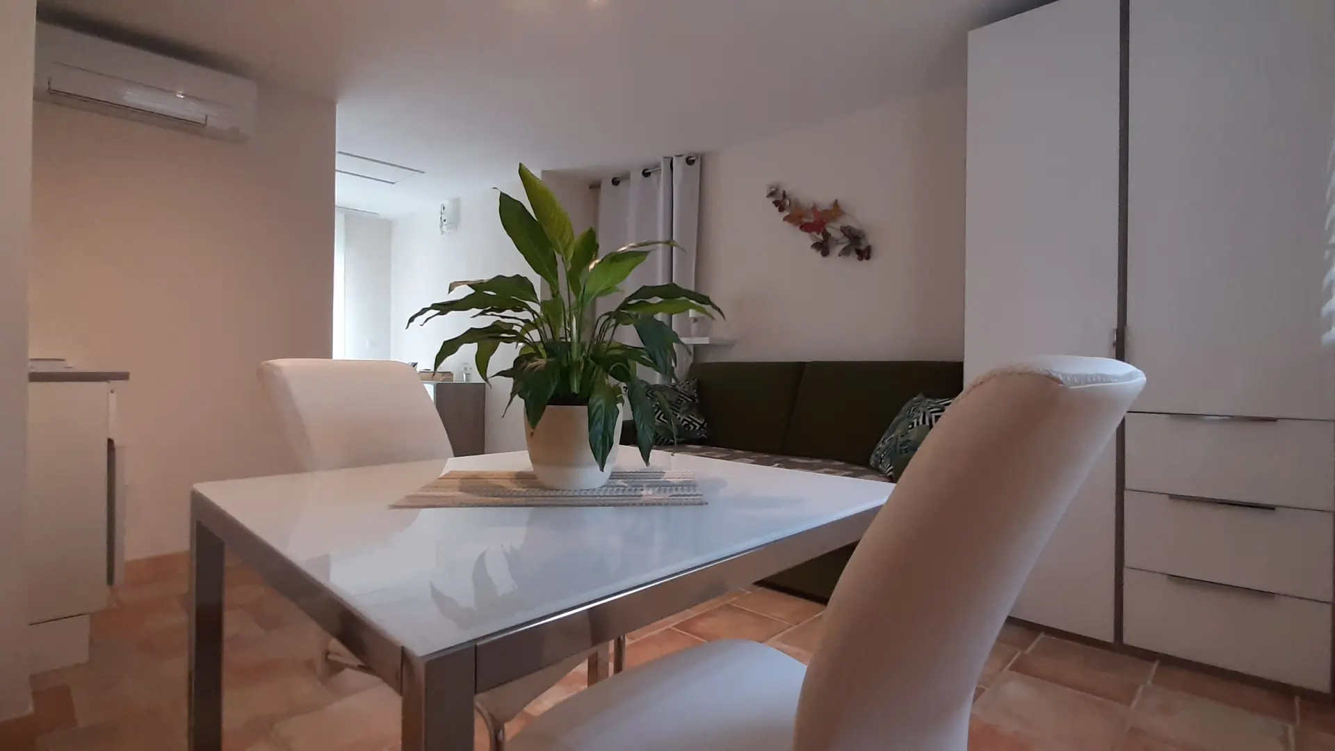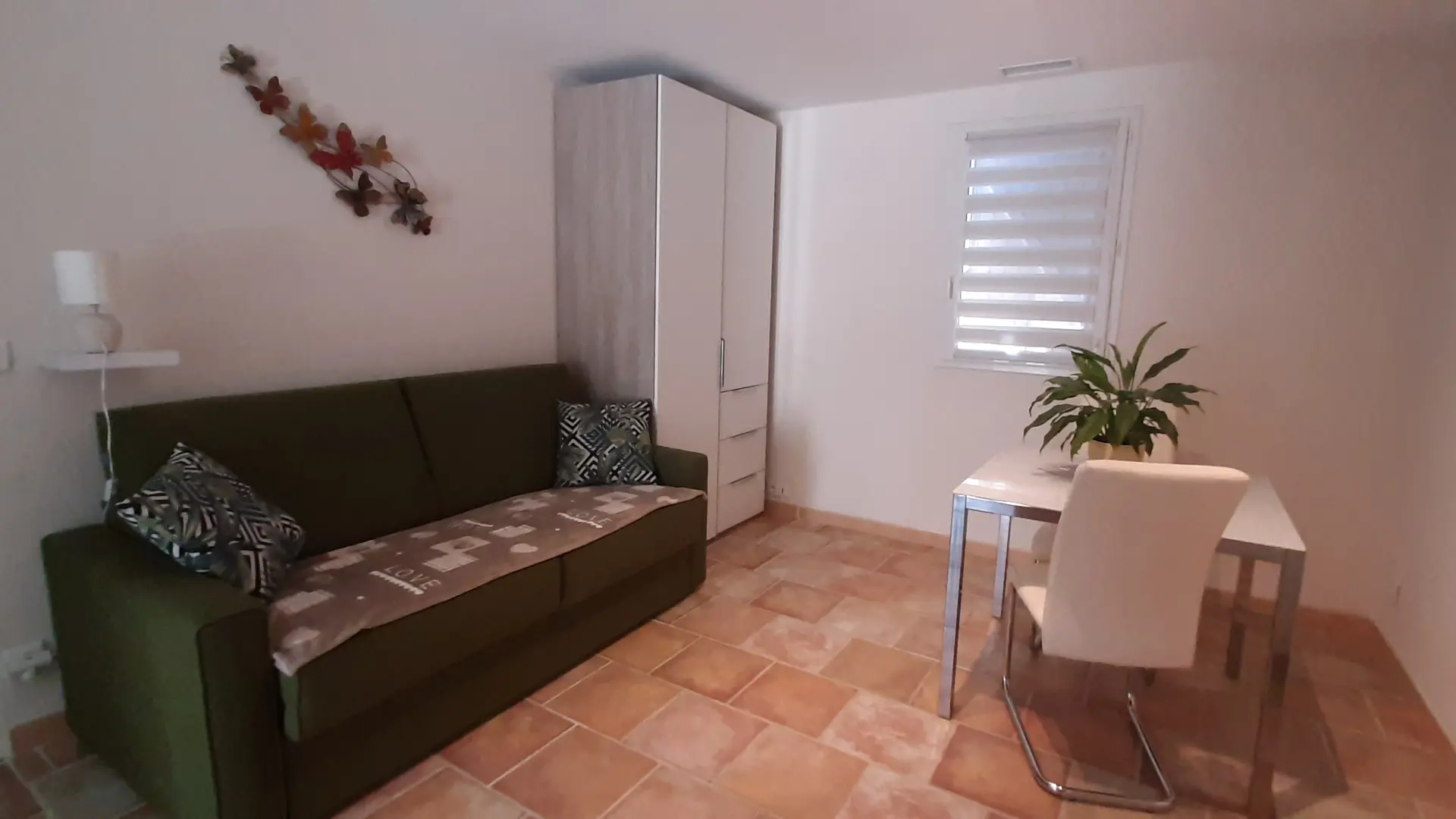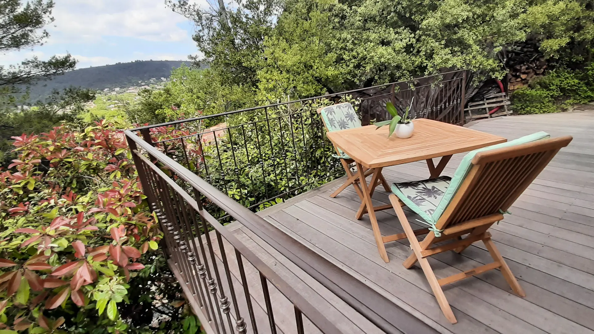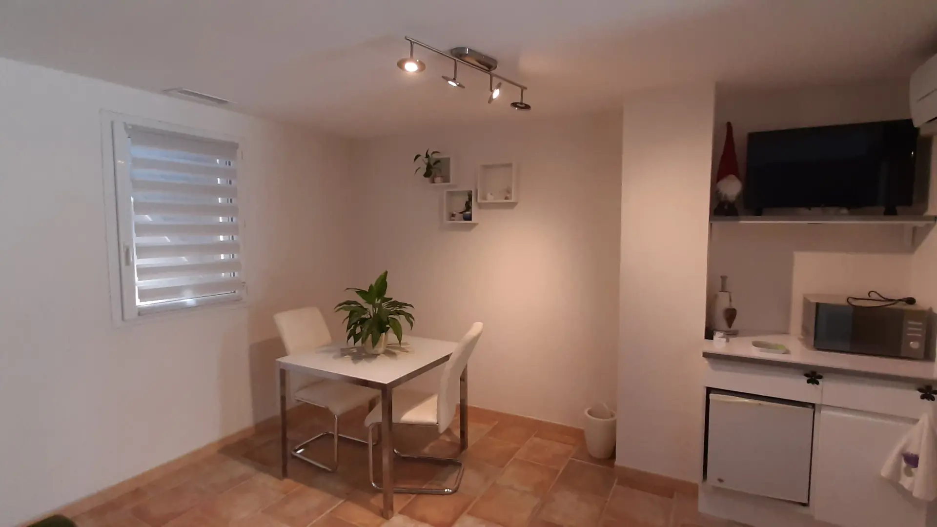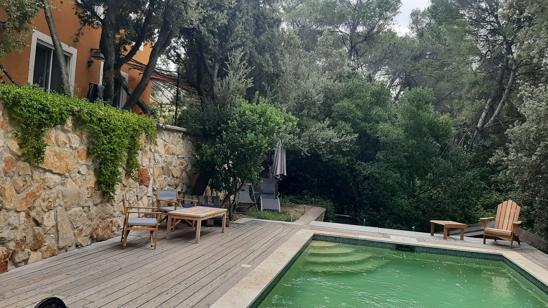 Welcoming and comfortable air-conditioned room fully equipped with bathroom (walk-in shower) and private toilets, on the edge of the forest, in a quiet area. Breakfast can be taken on the private terrace or in the room in complete autonomy. Pool access.