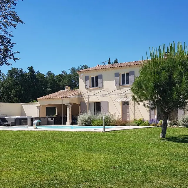 In the heart of the Alpilles, 1.5 km from Maussane les Alpilles, "La Bastide de Luson" is a beautiful farmhouse completely independent on 9000 m² of enclosed land, with fruit trees, flowers and shrubs, pine trees. It has its private secured swimming pool (4 m x 8 m - Depth 1.40 m), a bowling alley, a covered terrace with garden furniture, terrace shaded under a pergola, pool house in front of the pool.