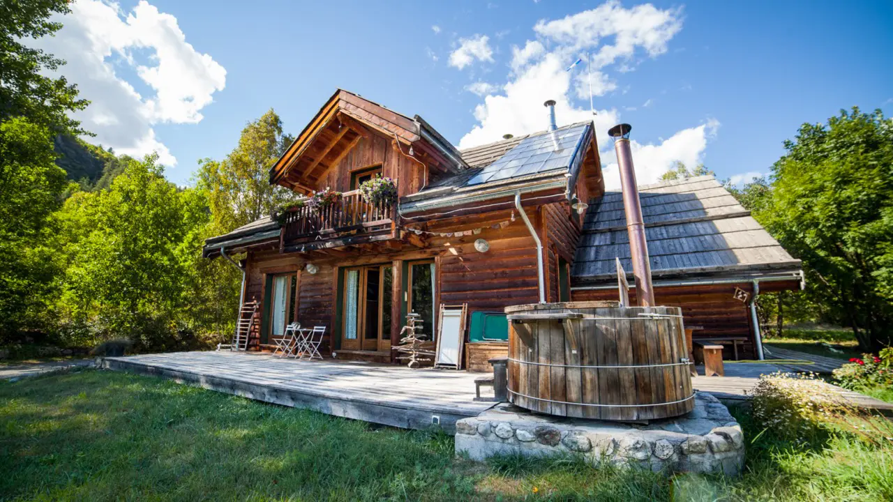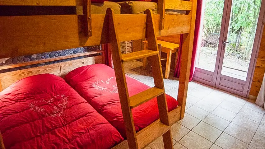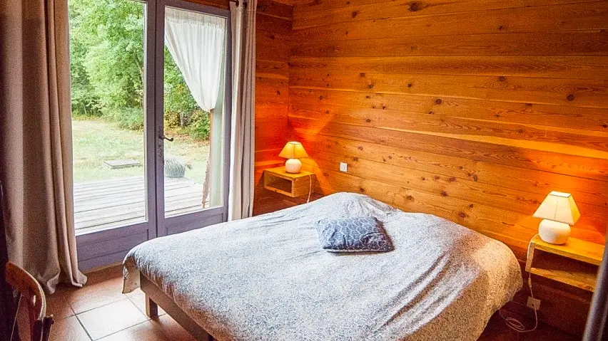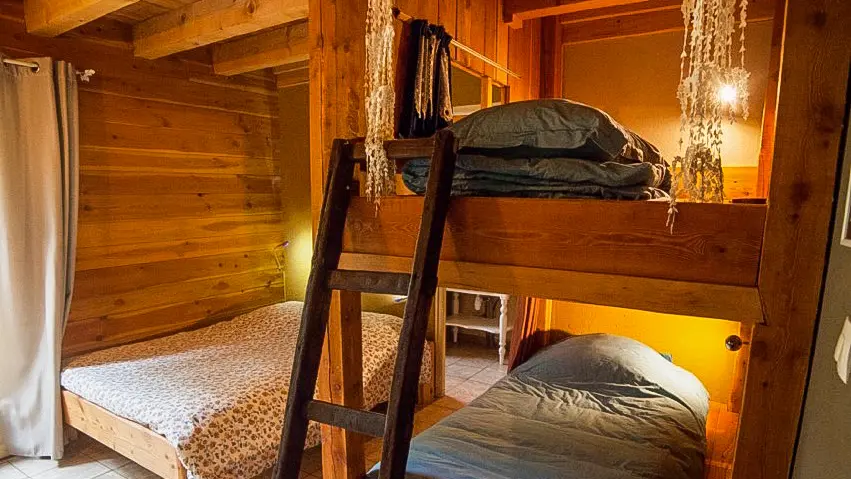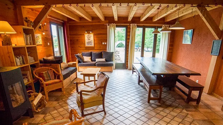 The Chalet is a wooden eco-construction equipped with solar panels and a geothermal heat pump. It offers 3 spacious, comfortable bedrooms with private bathrooms. The large dining room can accommodate generous tables. Meals are prepared in an attractive, well-equipped kitchen. With a maximum capacity of 12 people, the chalet is the cozy, comfortable option for vacations with family or friends.