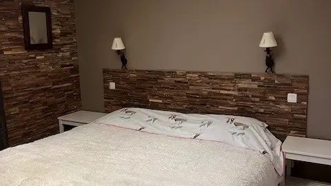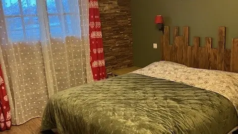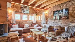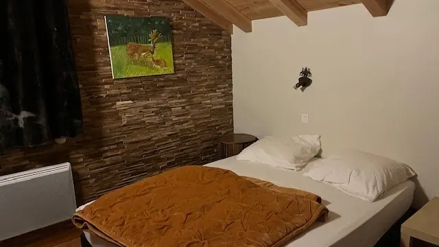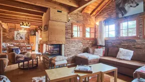 The chalet consists of a large reception room with two lounges (fireplace and television), a dining room with a large table (2.60 m x 1.80 m), a fully equipped open kitchen, and a utility room.