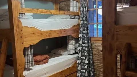 The chalet also has a carport, a ski room, and a laundry room equipped with a washing machine and dryer.
