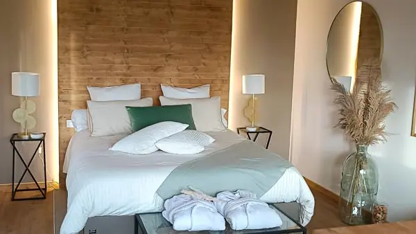 For your comfort, the suite is equipped with a king-size bed, connected TV with Netflix, connected speakers, fully-equipped kitchen with oven/microwave, induction hob, fridge/freezer, toaster, crockery and pots and pans.