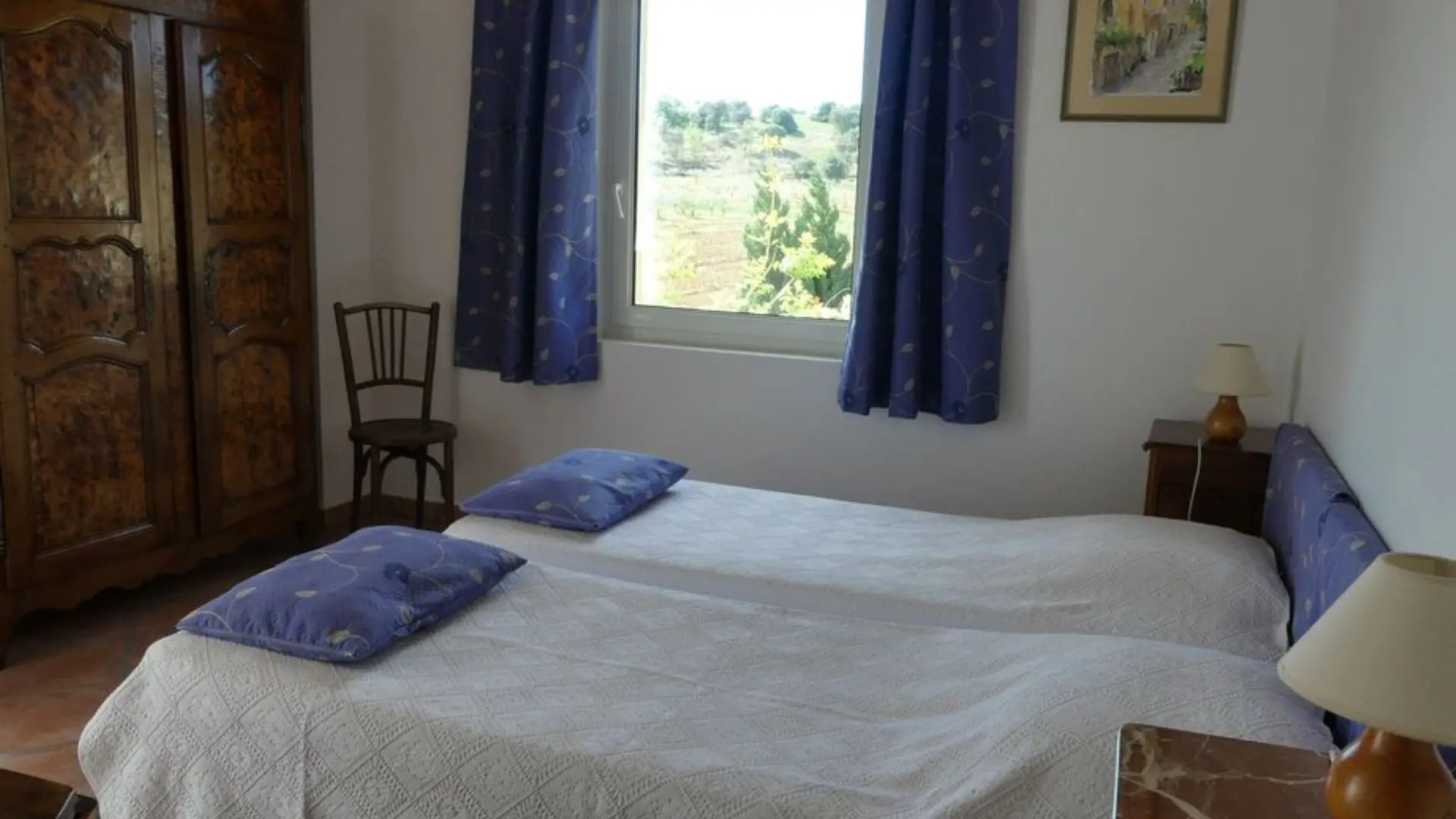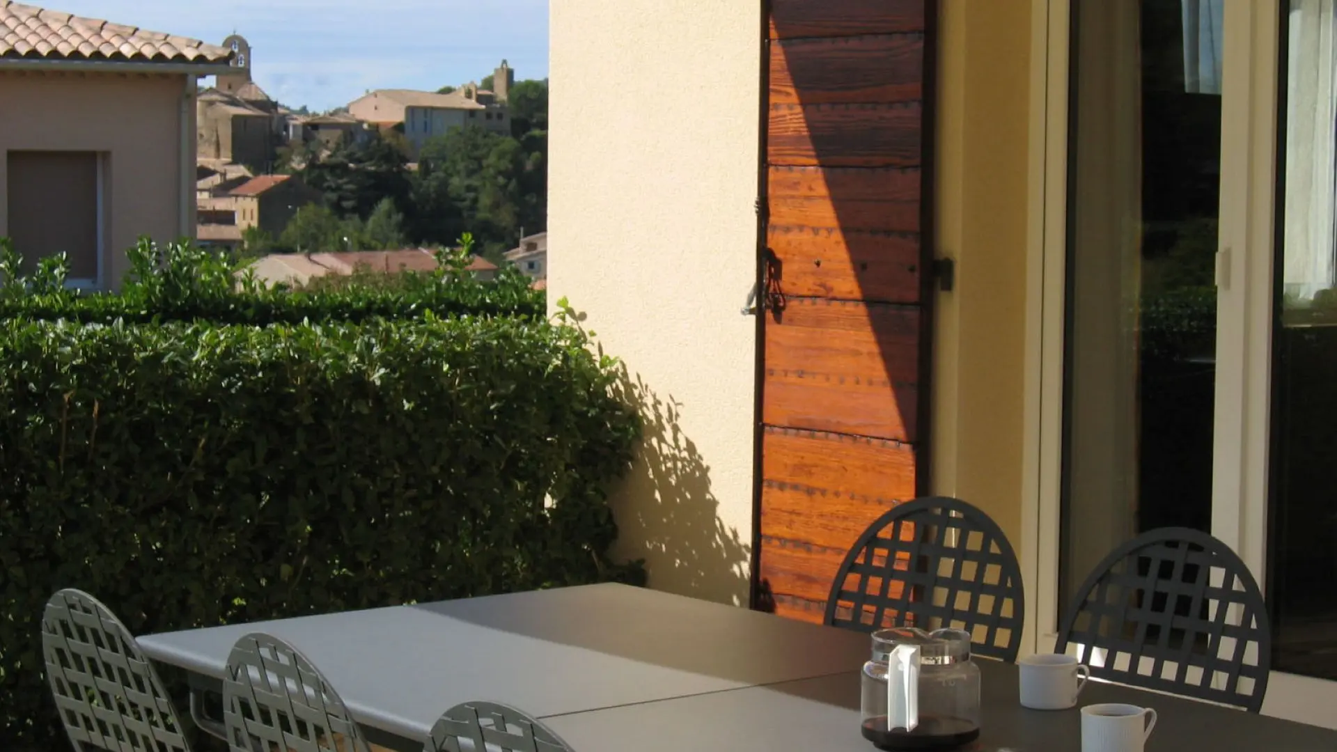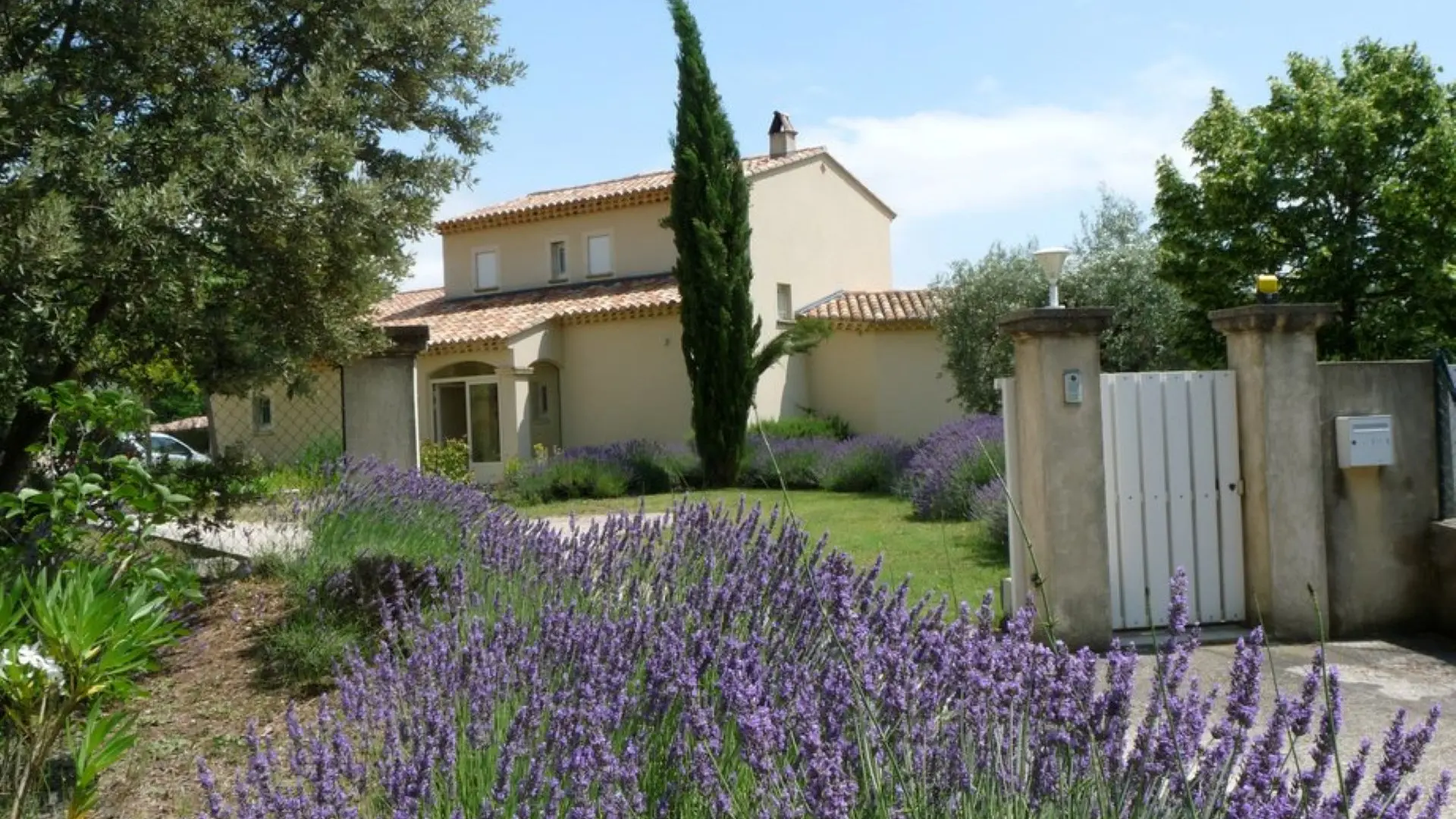 The beautiful sunny house is located in the countryside, in the middle of the vineyards, facing the small Provencal village. We are seduced by the panorama.