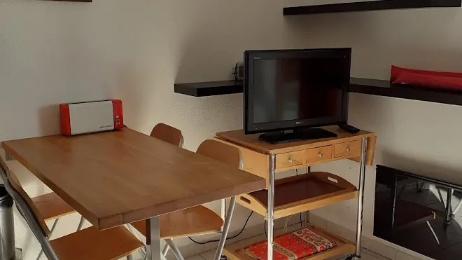 - Kitchenette opening onto the living area, well-equipped with fridge, hob, combi oven, toaster, kettle, coffee machine, washing machine, hoover, iron, raclette or fondue machine..