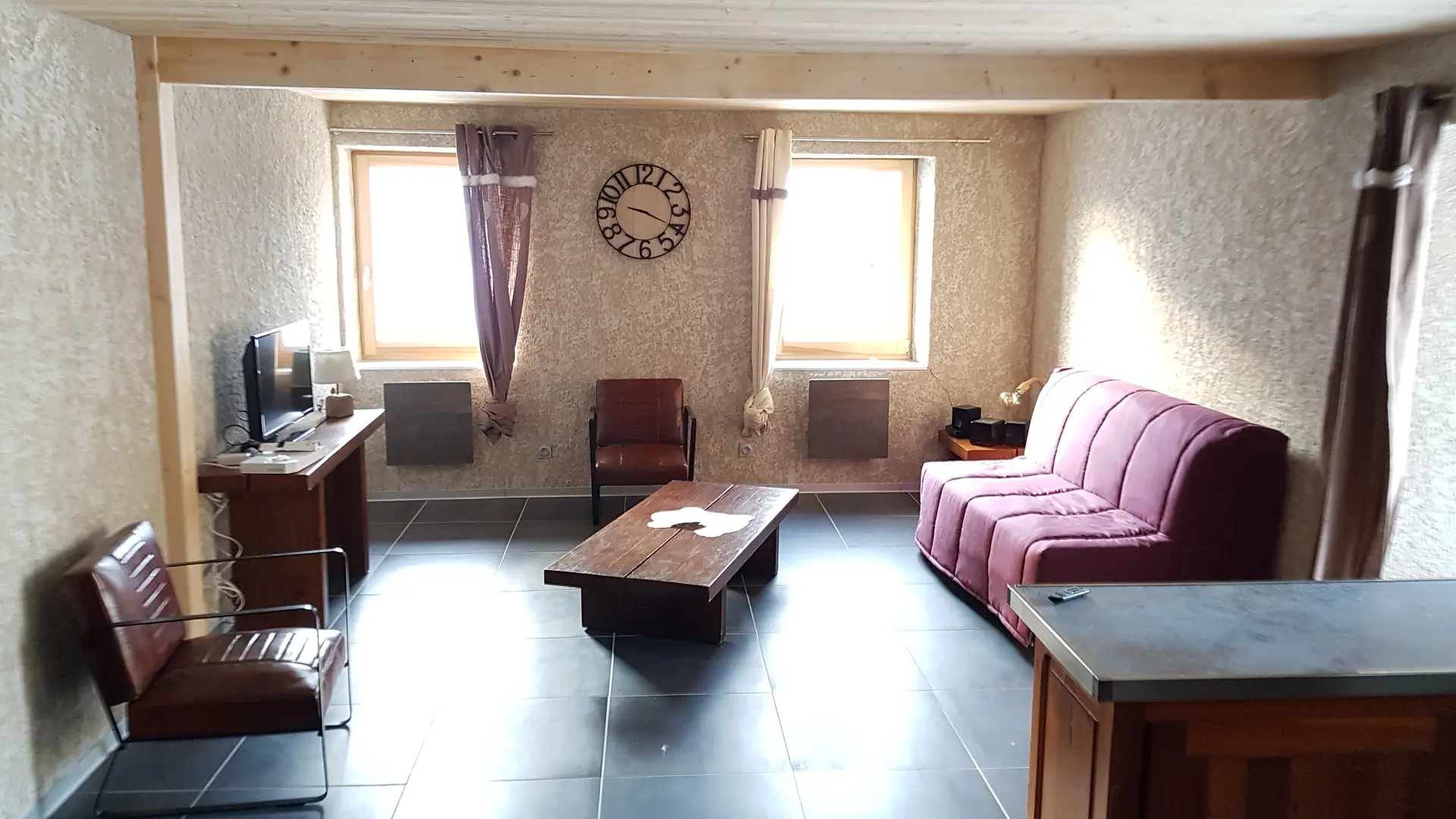 - a fully-equipped kitchen, living room and wood-burning stove