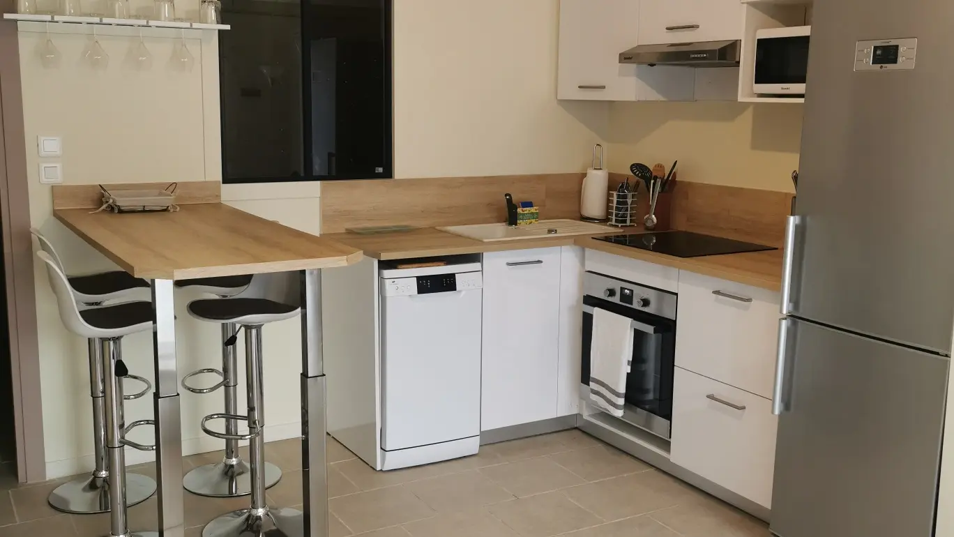 The 38m² apartment is located on the first floor of a detached house.