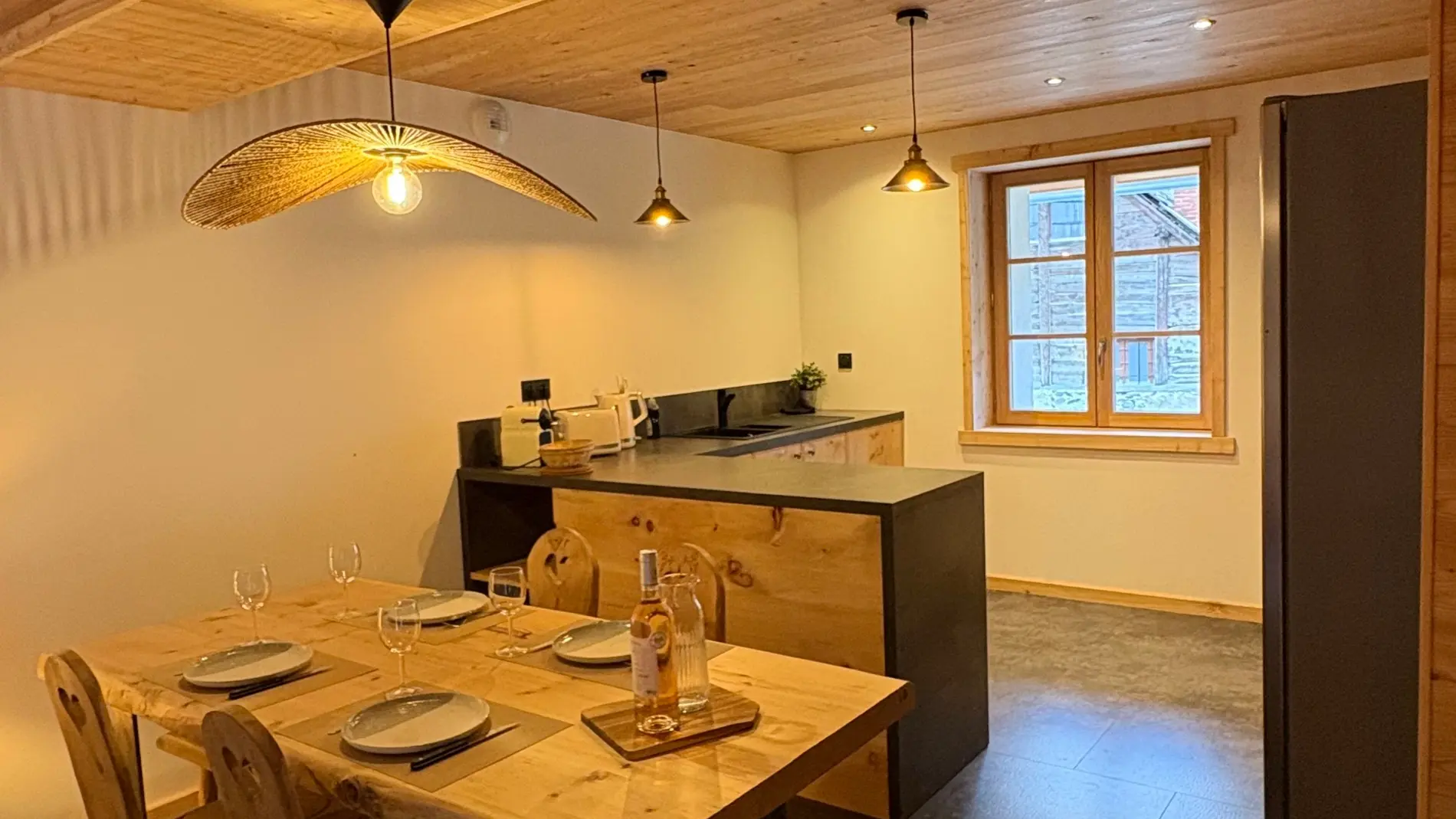 The house has been renovated this year by Névache village craftsmen using quality materials, and the traditional furniture in local larch gives it a warm atmosphere.