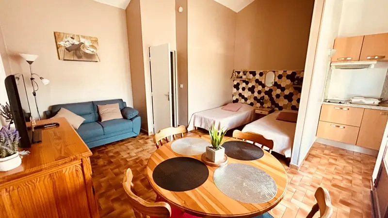 Charming studio (being renovated for the 2024 season) on the second floor of the Croix du Sud residence, ideally located between the thermal baths and the banks of the Verdon. Quiet location.