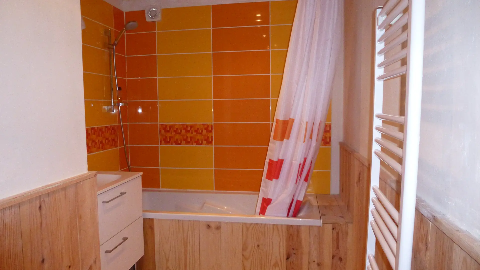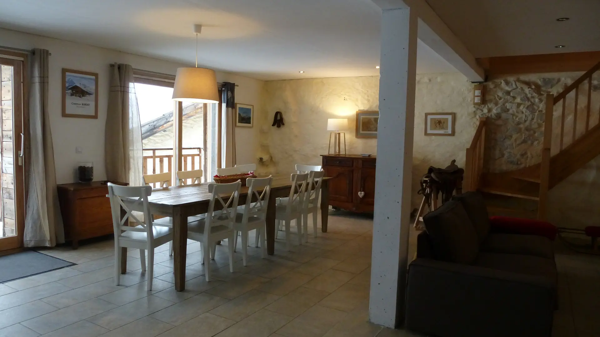 First floor: vaulted entrance, 55m² living room/kitchen with wood-burning stove and bay windows, storeroom, ski room, 1 bedroom with south-facing window, wc.