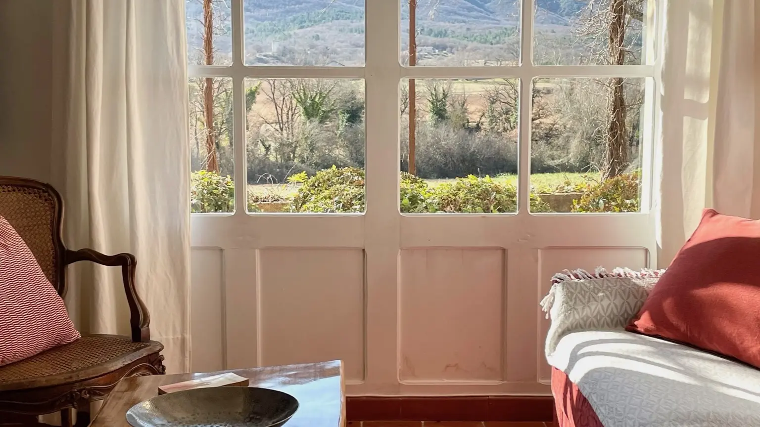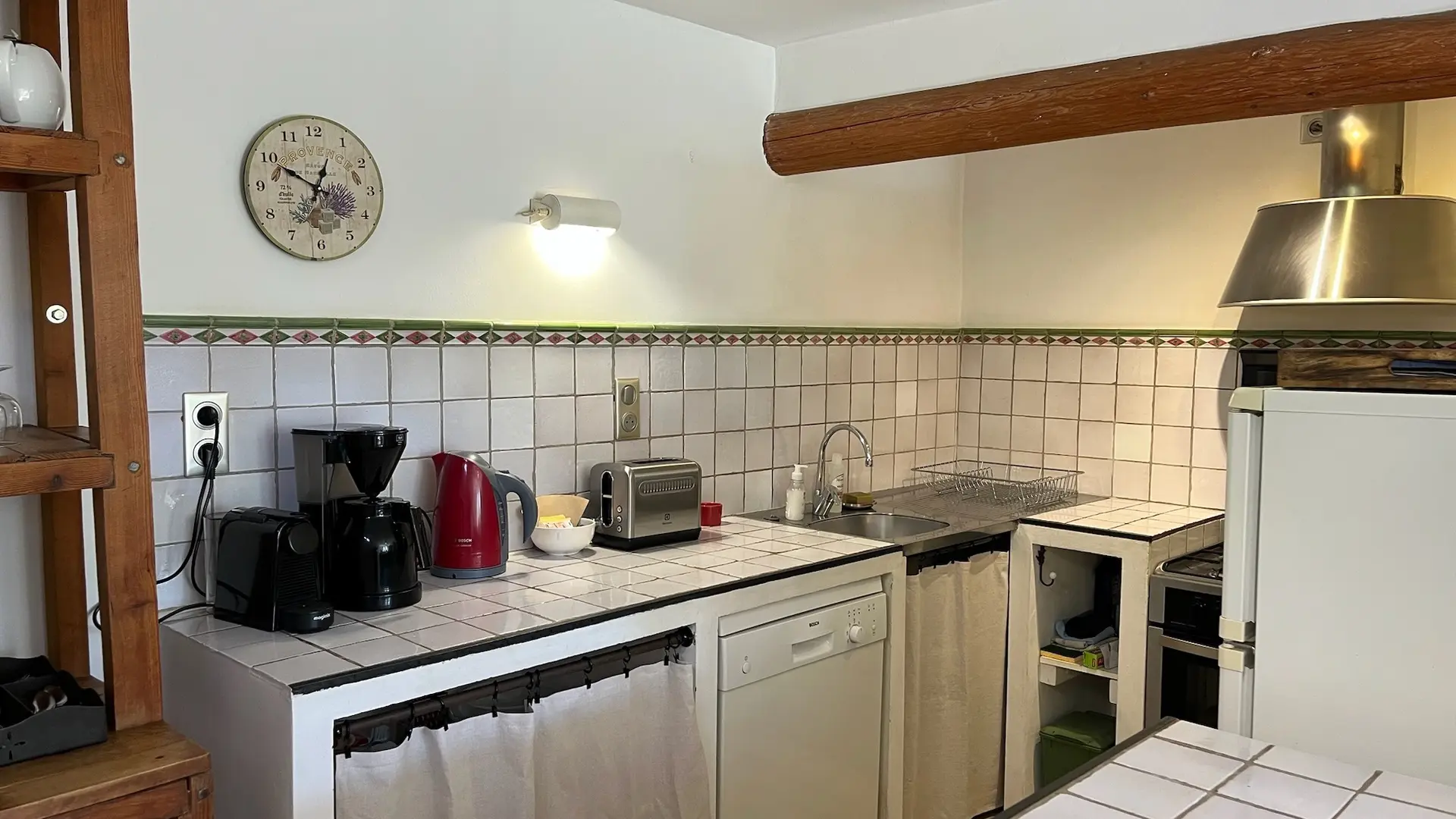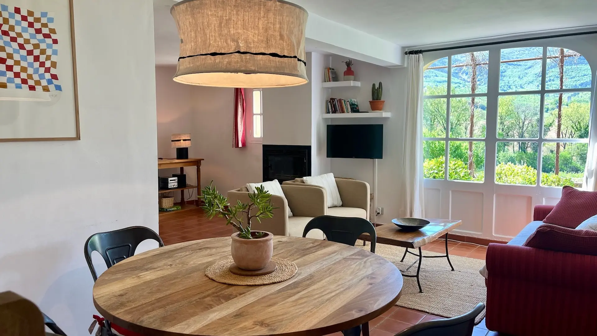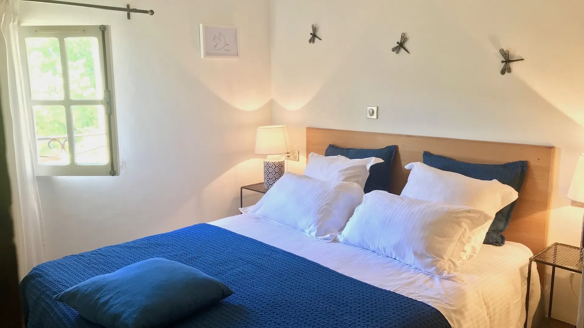 In the countryside, in a 5 hectares very quiet estate : charming farmhouse, facing south and the Grand Luberon. Private garden with trees, summer terrace. 12x8m pool to shard with 2 other mas. Very quiet. Air-conditioned rooms.