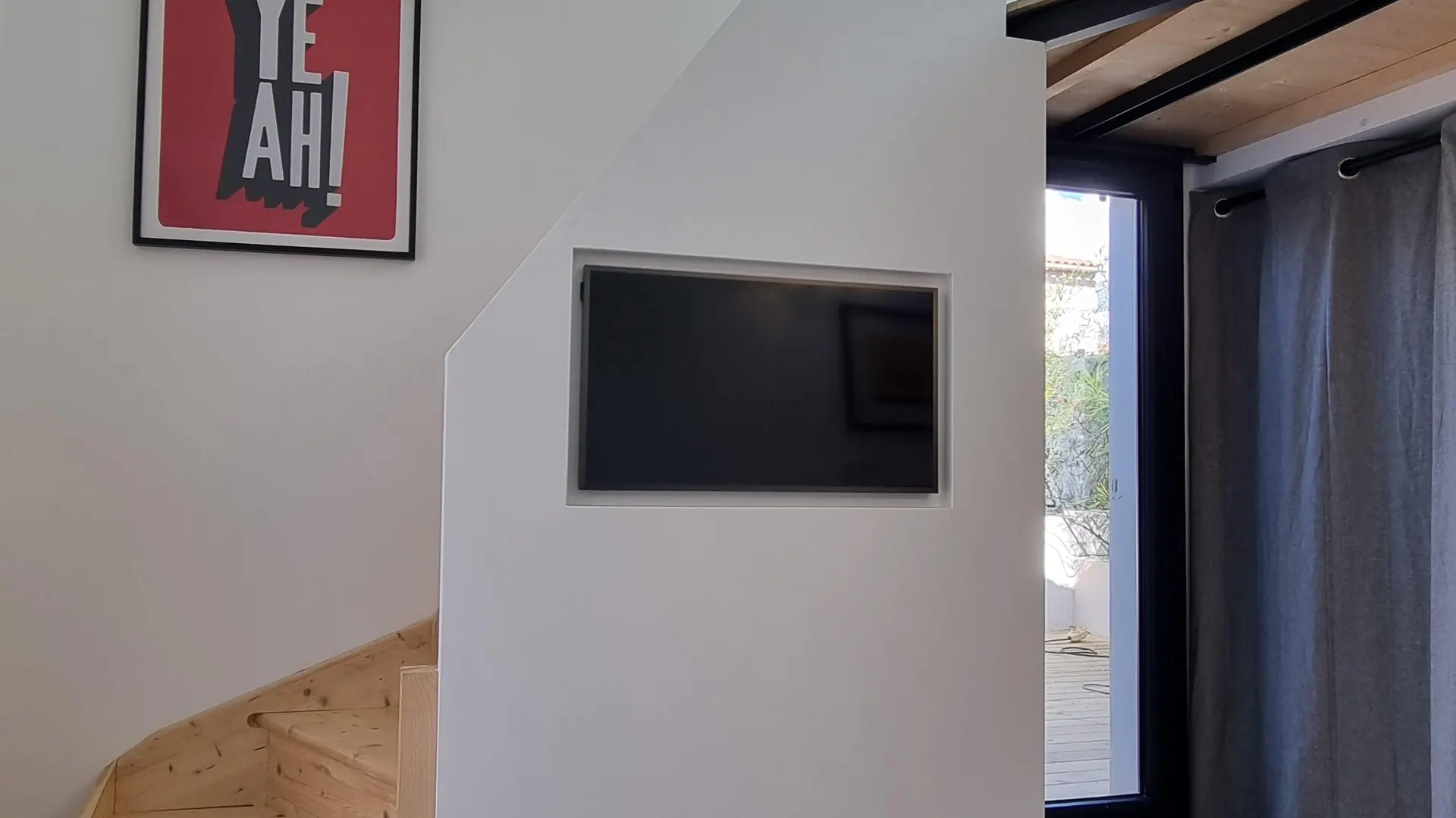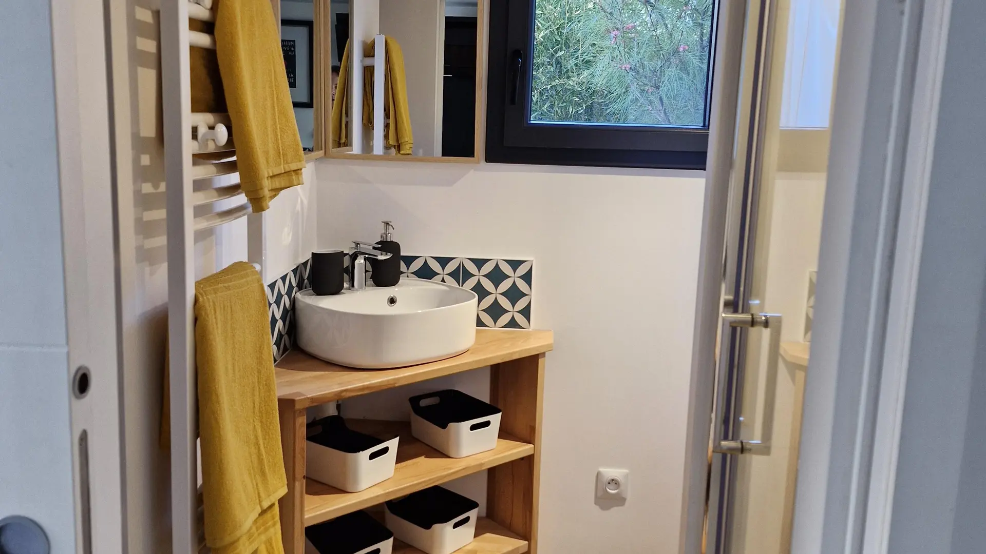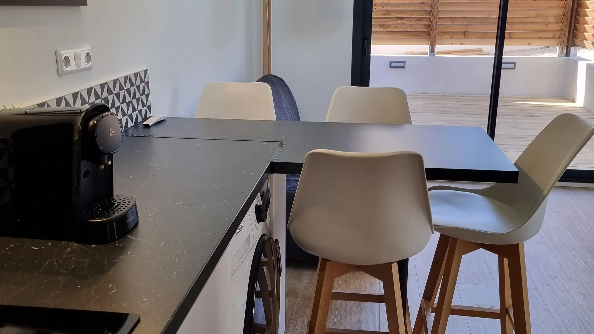 Two private terraces, each measuring 15 m², quiet and not overlooked: garden furniture, table + 4 chairs, plancha grill, parasol and outdoor shower.
