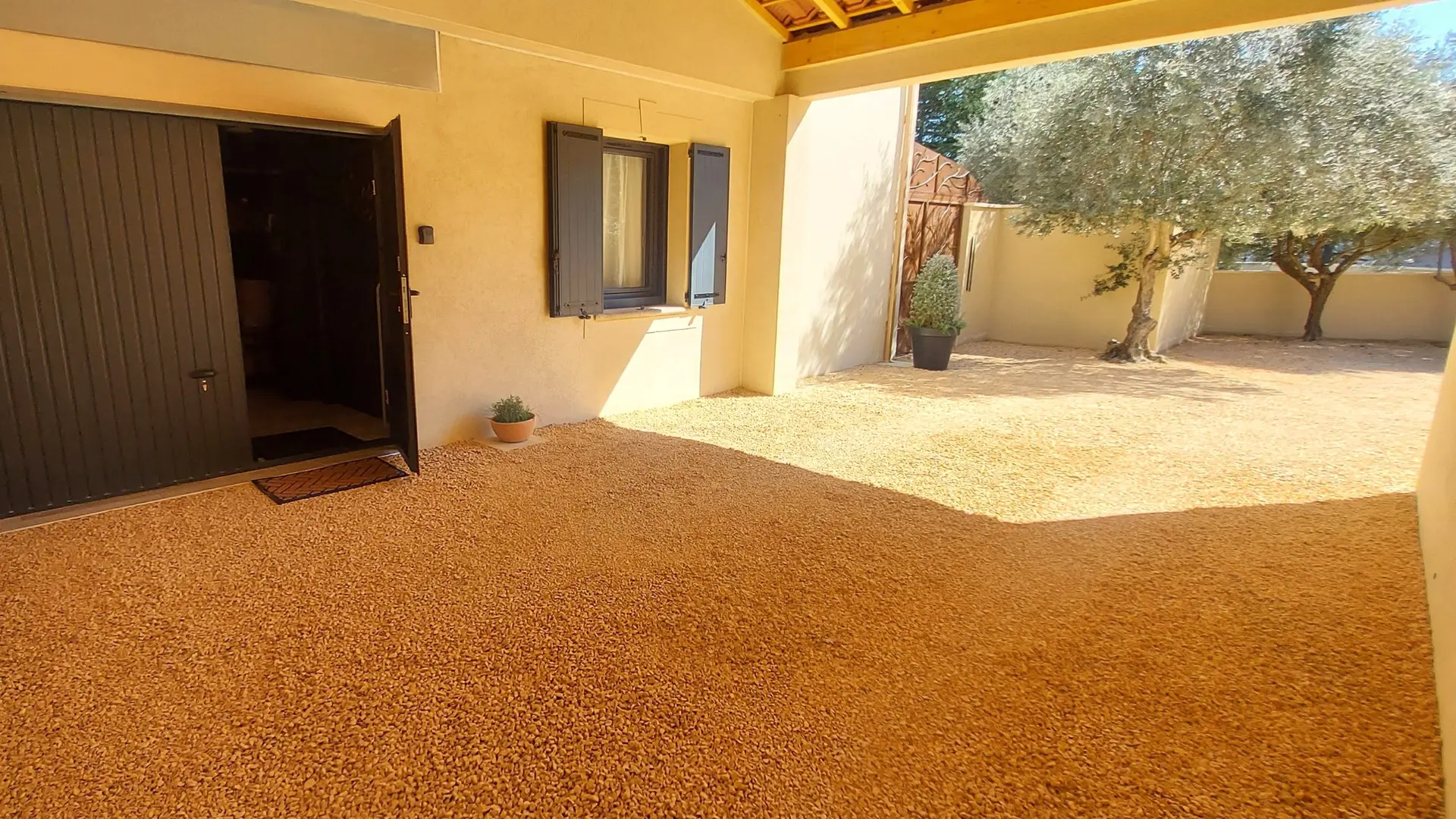 "50 m² fully-equipped guest house nestled in greenery, attached to the owner's residence.
