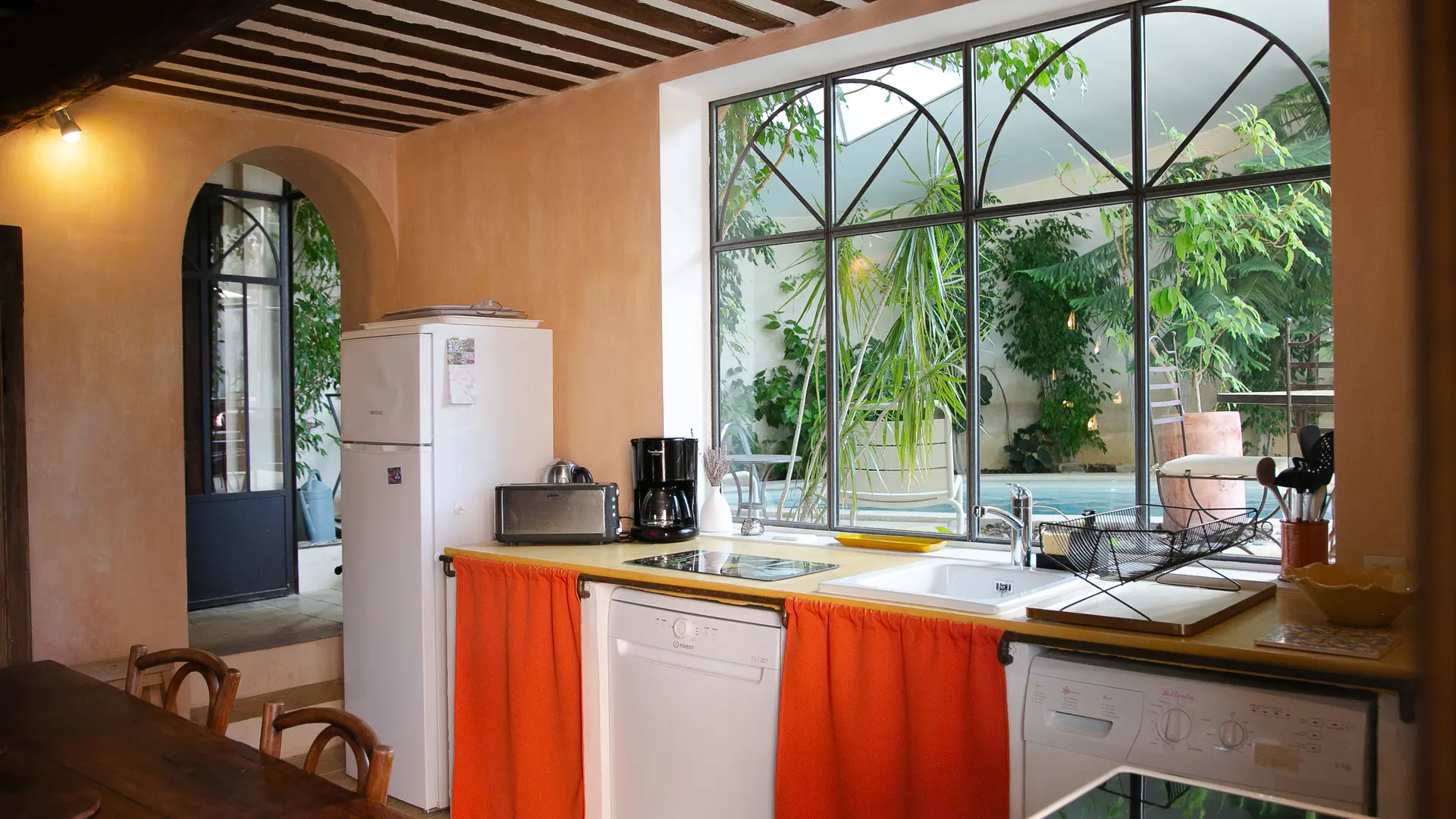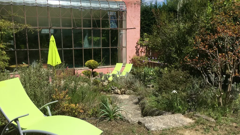 The greenhouse where several species of tropical plants live side by side is a delightful place to enjoy the early morning light, have breakfast there or simply read or dream. It opens wide onto a rock garden with a small water lily pond: it is the ideal place for sunbathing and outdoor dining.