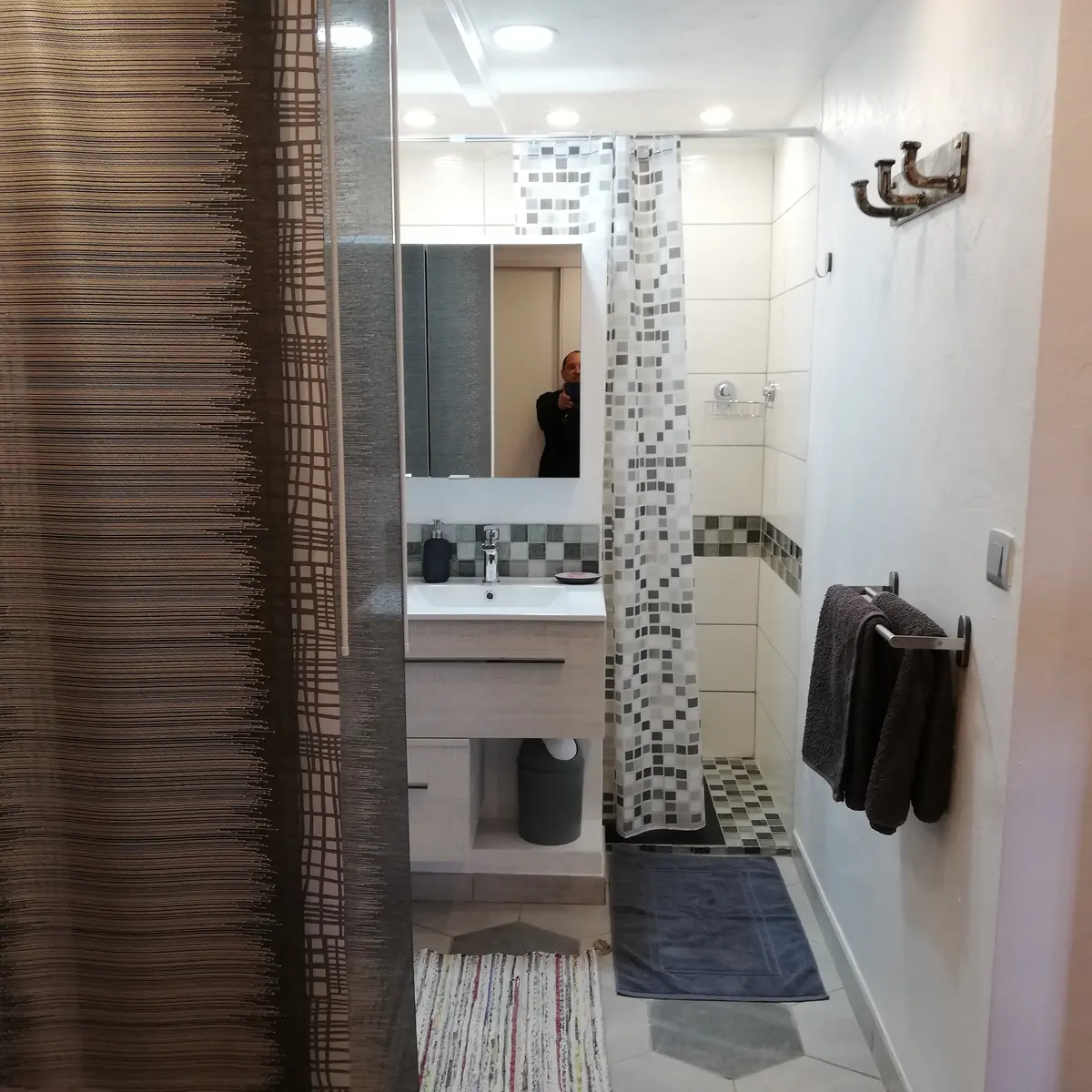 Living room with kitchenette and 1 sofa bed, sleeping area with double bed, bathroom with shower / wc. Private terrace and garden.
