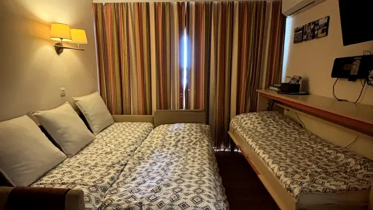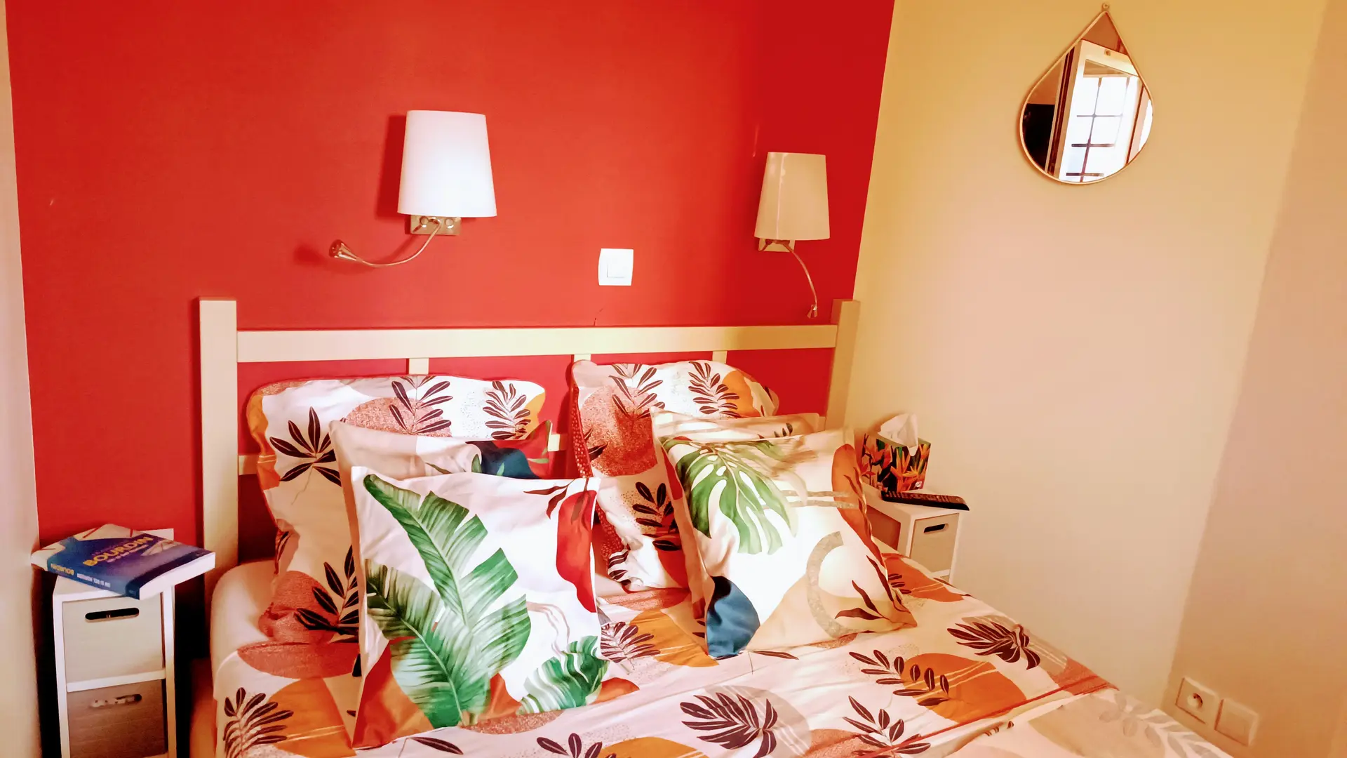 *ENTRANCE with cupboard, shoe rack, coat hangers, mirror etc. *One bedroom with a 140 cm bed, 2 bedside tables, TV.