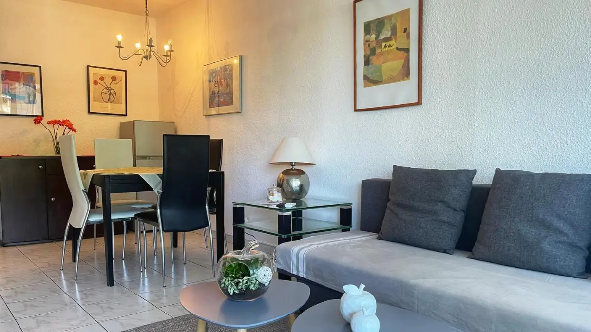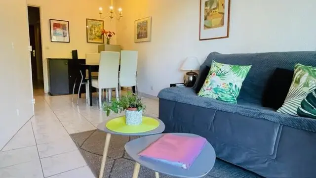 1-bedroom apartment, located in a neighborhood between Antibes and Juan-les-Pins, on the edge of Cap d'Antibes. The Residence Le Mas de Tanit is a residence with swimming pool and caretaker, in the heart of a residential quiet area, 300 metres from the city centre, and close to shops, beaches, and the train station. Old Antibes is a 10-minute walk away.