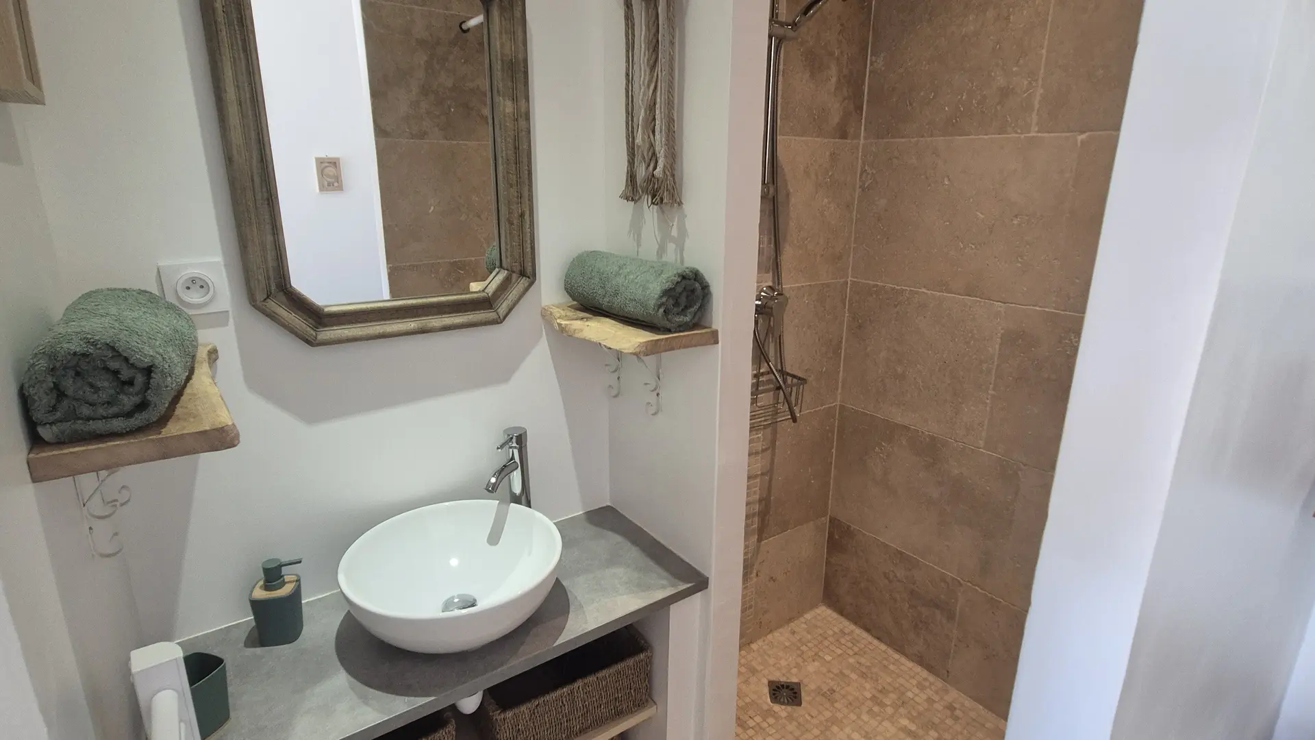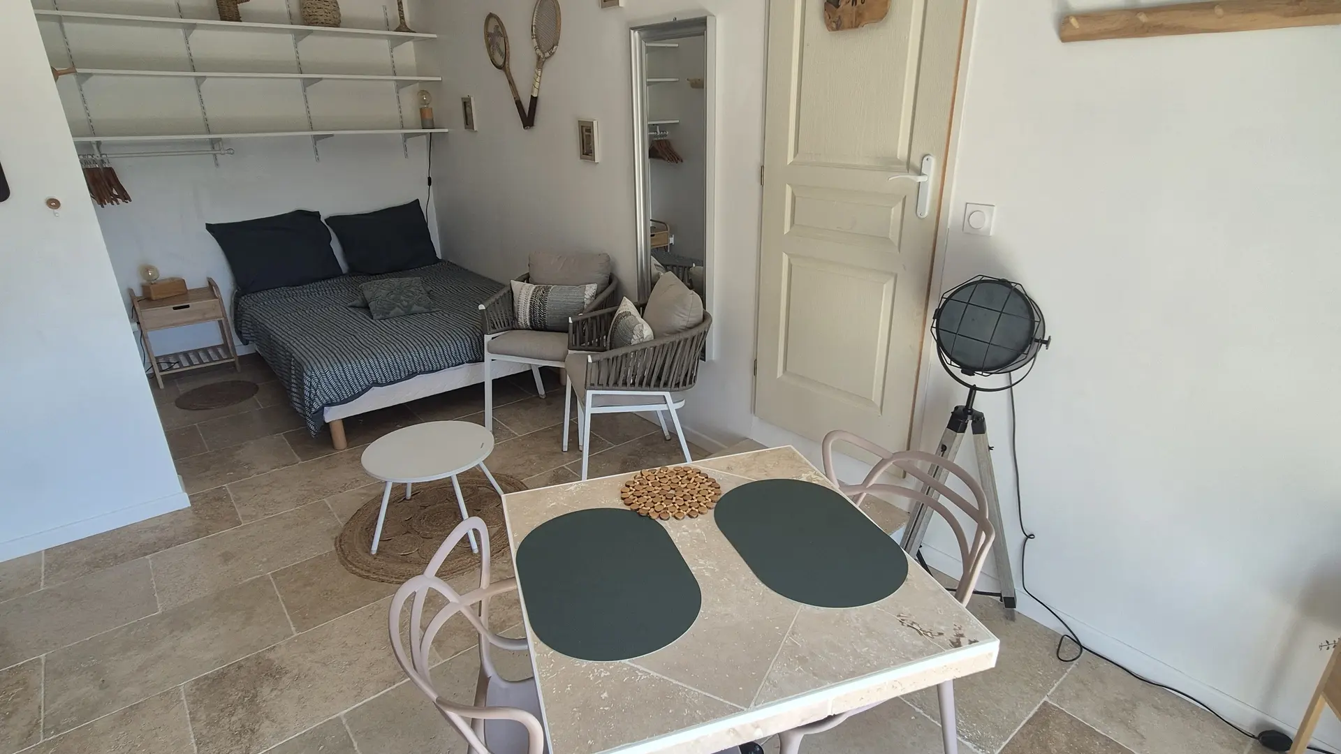 For leisure and recreation, guests have access to a pétanque court, fitness equipment, the garden, and the swimming pool. The shared pool is surrounded by a large south-facing terrace, perfect for relaxing and enjoying the sun