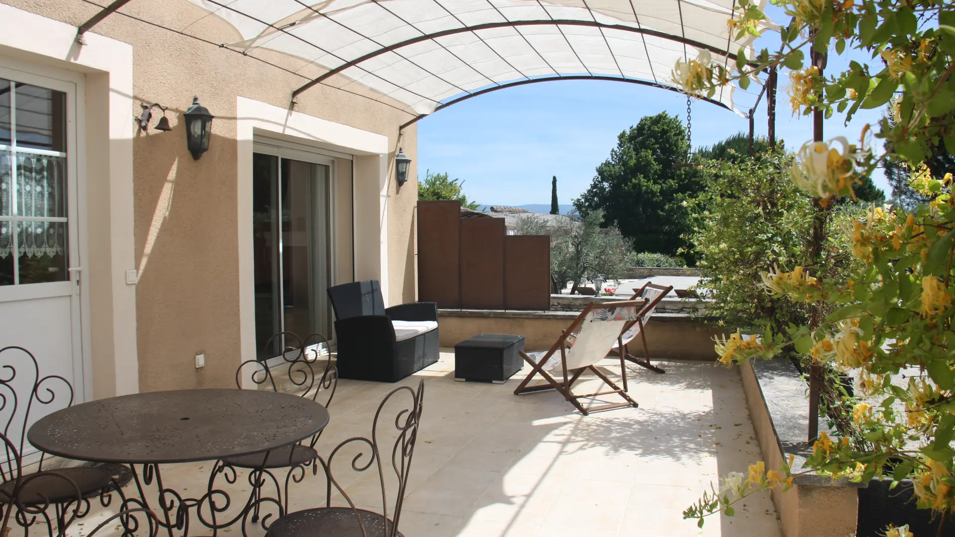 Fully equiped :American kitchen, dishwasher, hob, oven, microwave, fridge, freezer, washing machine and ironing set. Shower room with WC. Living room, lounge with fireplace, TV & DVD player, Wifi connection. South-facing terrace, with a view of the Luberon. Garden furniture, deck chairs, barbecue. Private parking next to the cottage, inside the property.