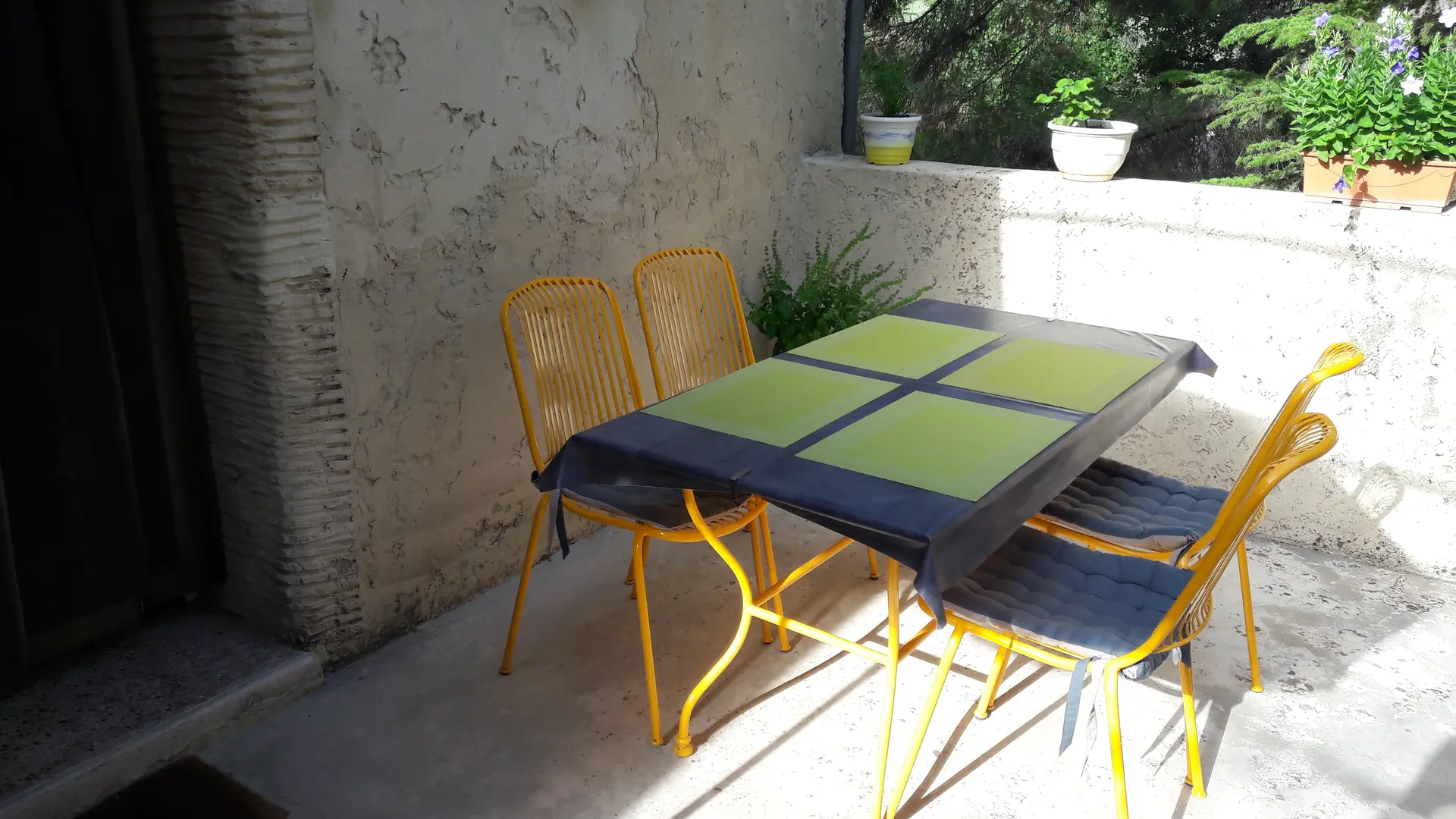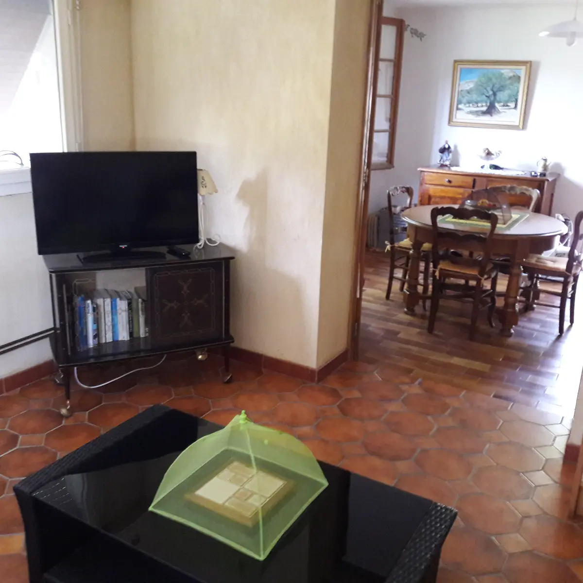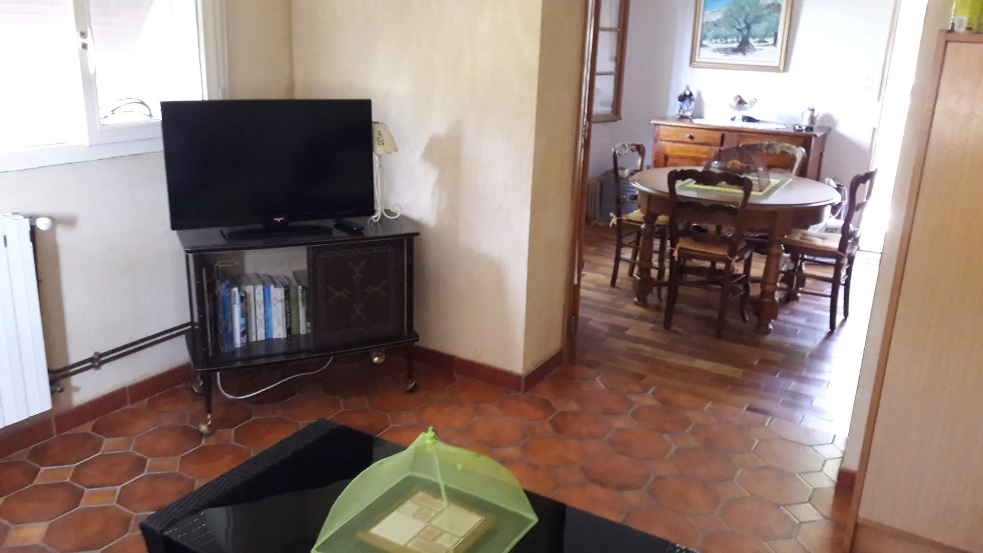 This 68 m² ground-floor apartment adjoining the owner's house stands on a hill in 5,000 m² of wooded grounds and enjoys beautiful views. It has a courtyard, a car park, a living room, a kitchen, a lounge, a double bedroom (140cm bed), a twin bedroom (two 90cm beds), a shower room and a toilet.
