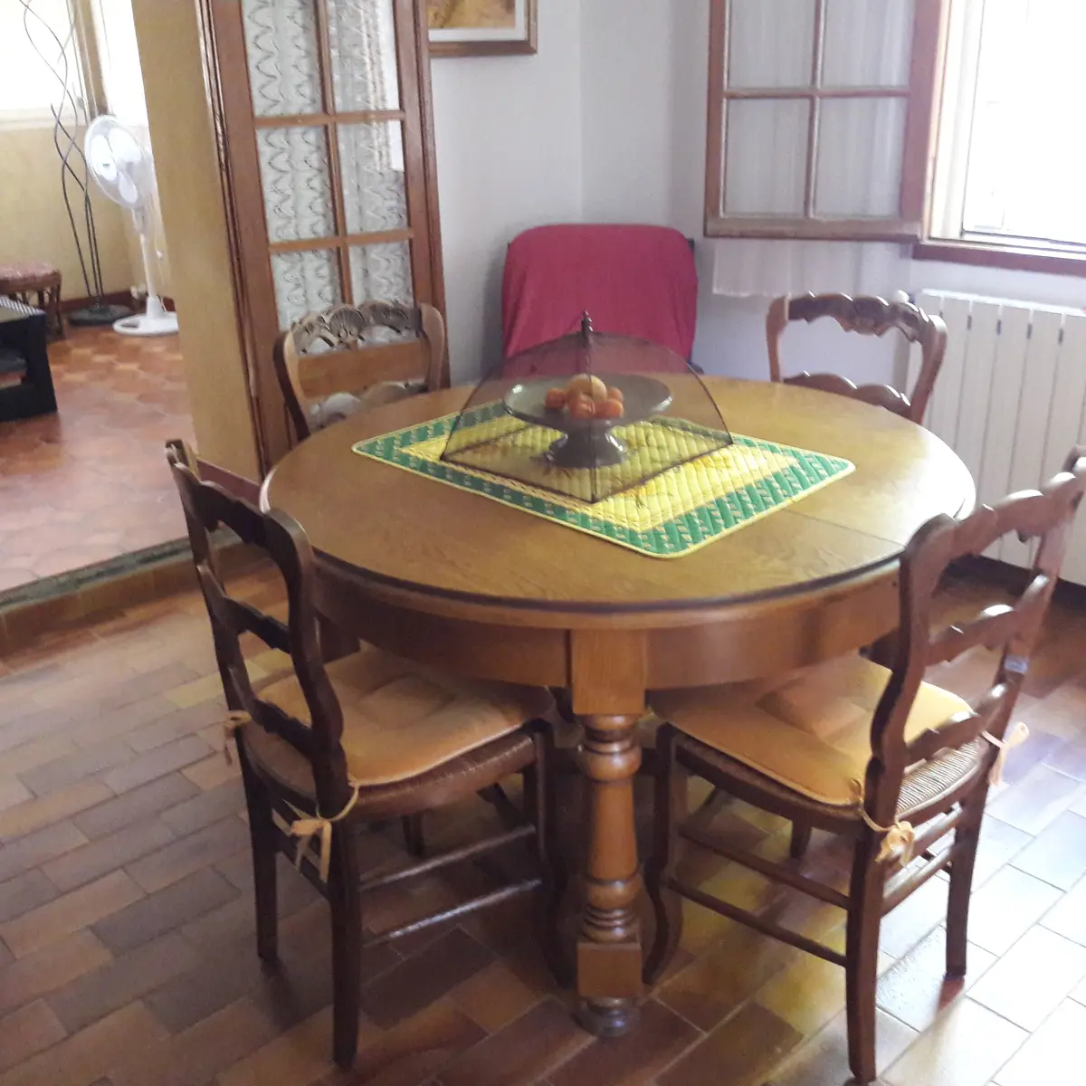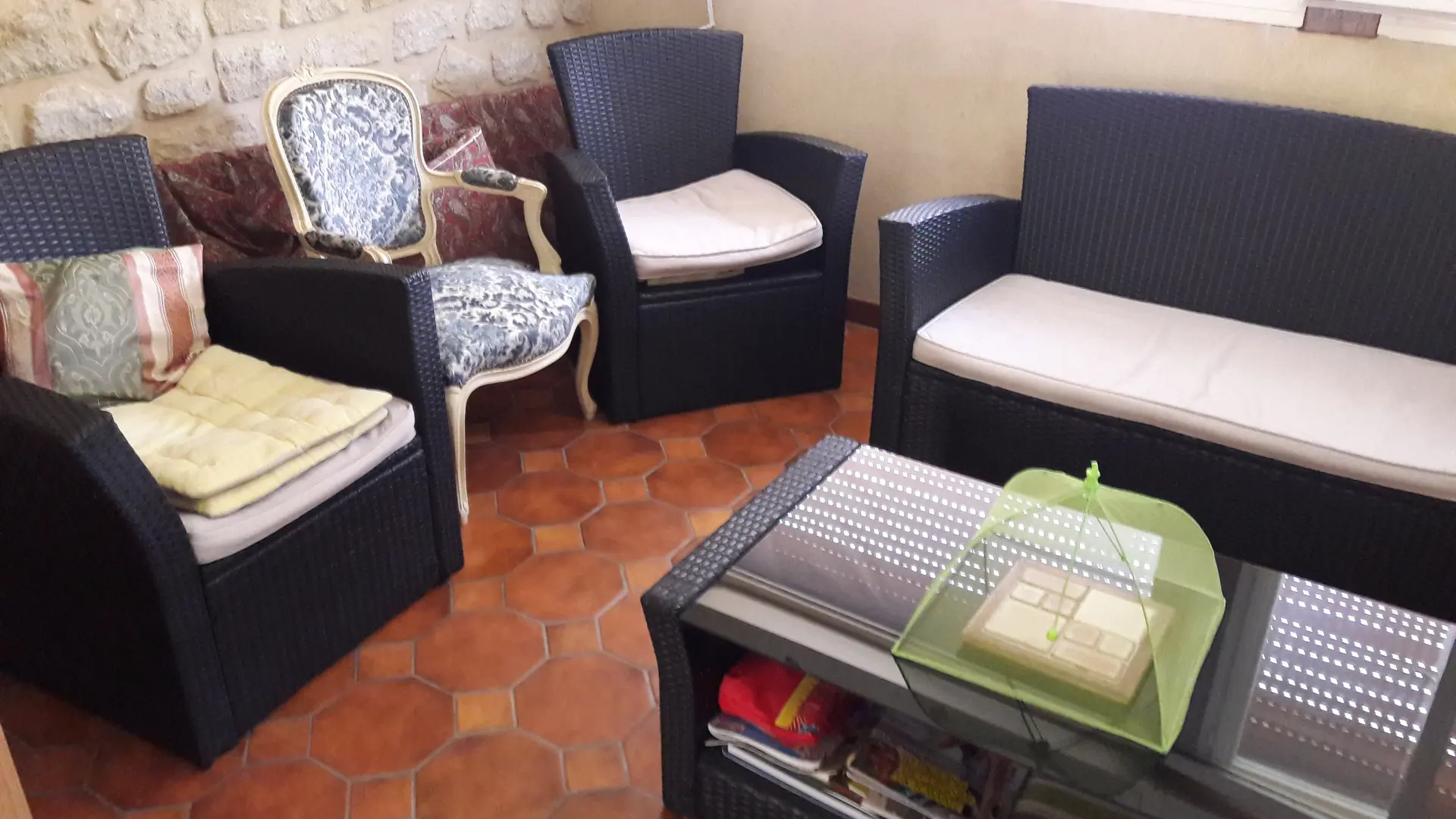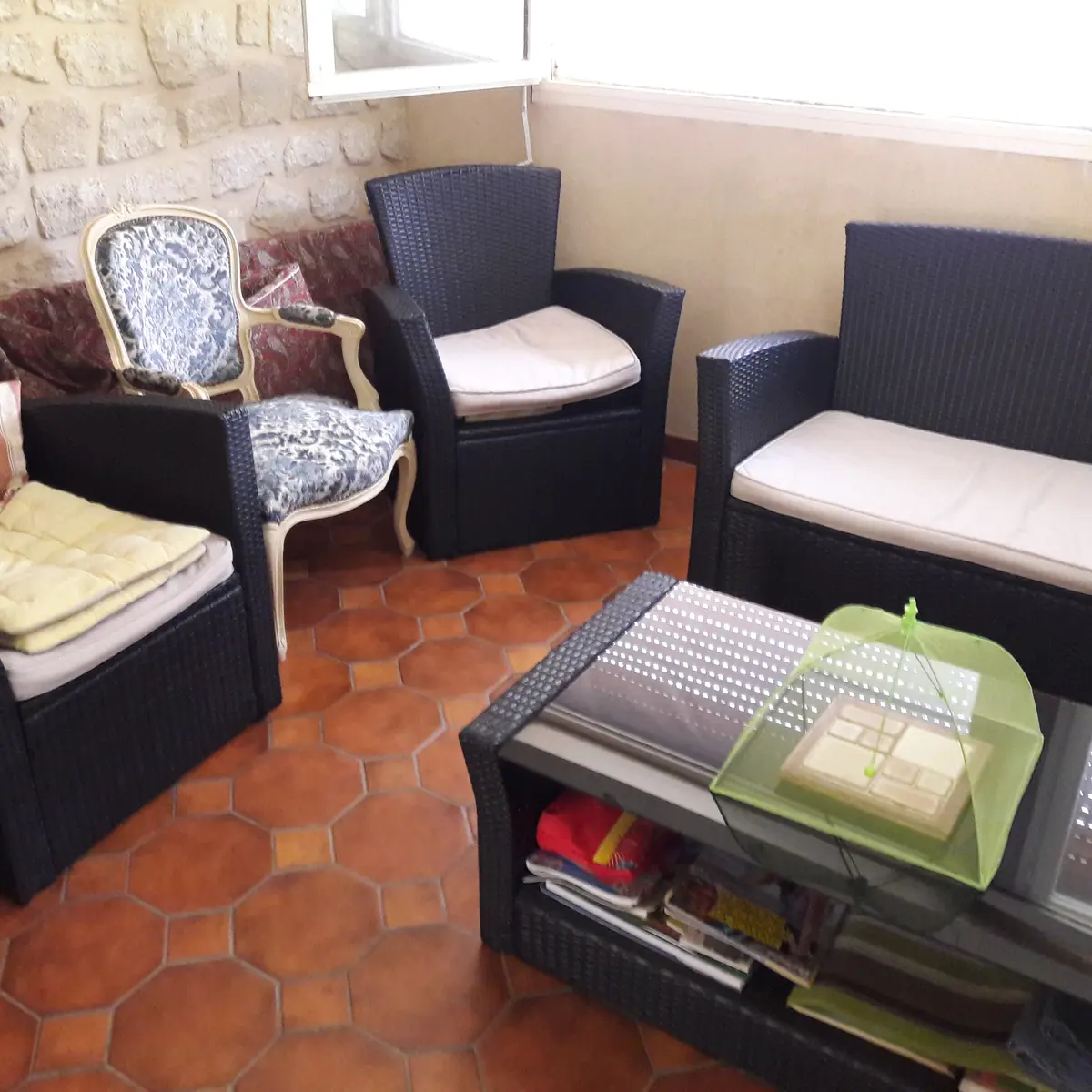 This 68 m² ground-floor apartment adjoining the owner's house stands on a hill in 5,000 m² of wooded grounds and enjoys beautiful views. It has a courtyard, a car park, a living room, a kitchen, a lounge, a double bedroom (140cm bed), a twin bedroom (two 90cm beds), a shower room and a toilet.