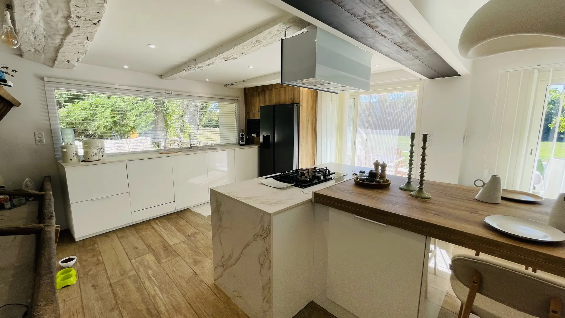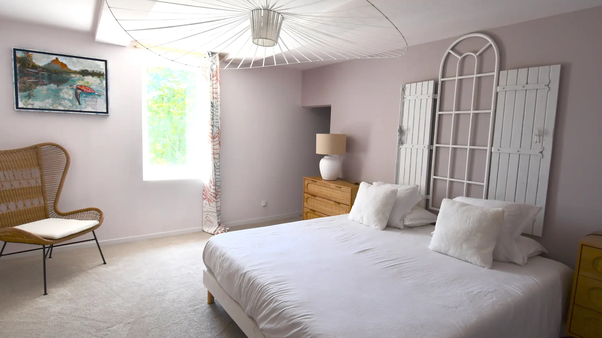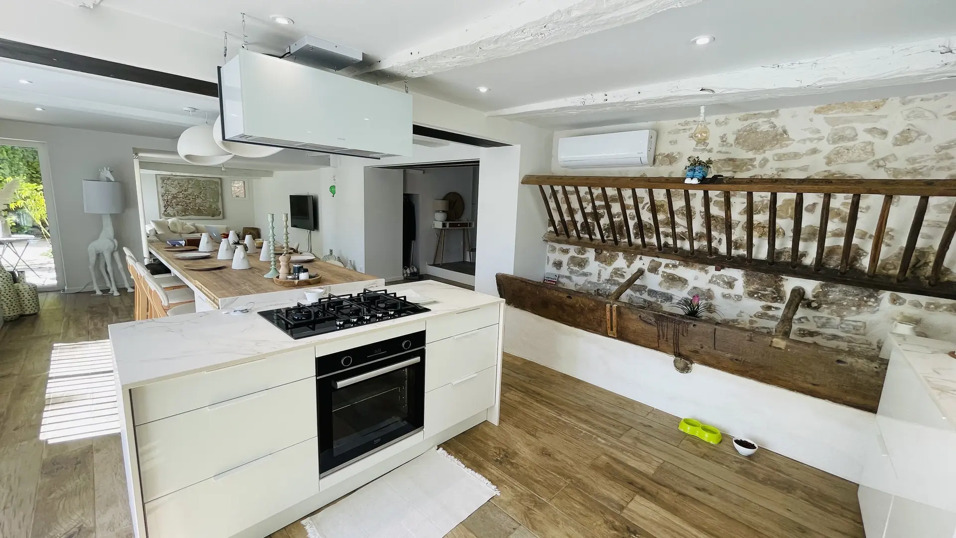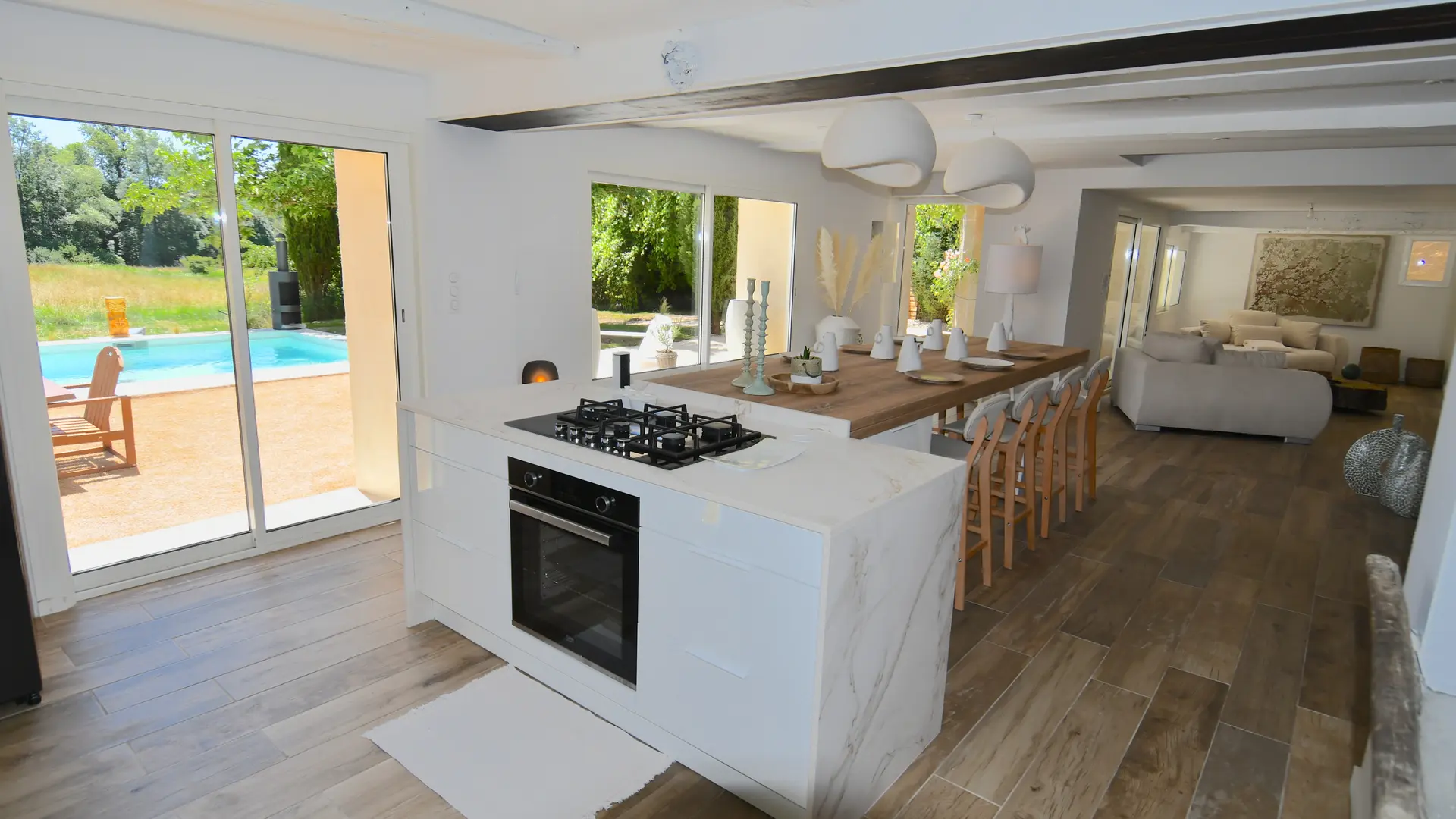 La Maison Blanche stands out for its modern decor, subtly inspired by natural materials and soft, clean tones, creating a warm and calming atmosphere. The living space has been thoughtfully designed to offer both conviviality and privacy, featuring: